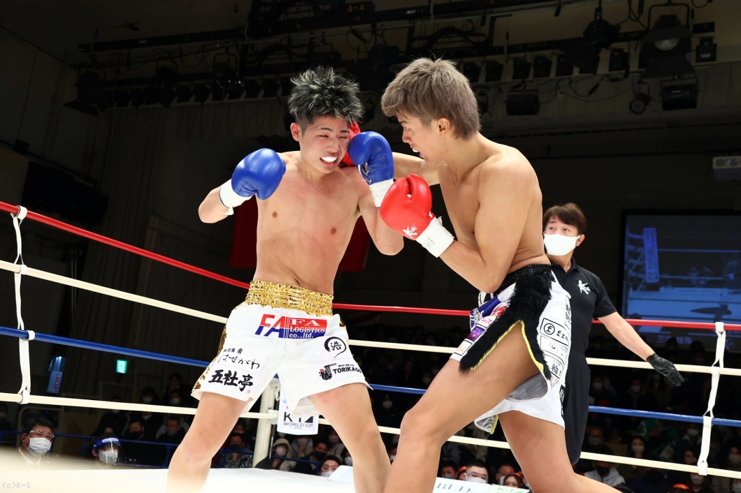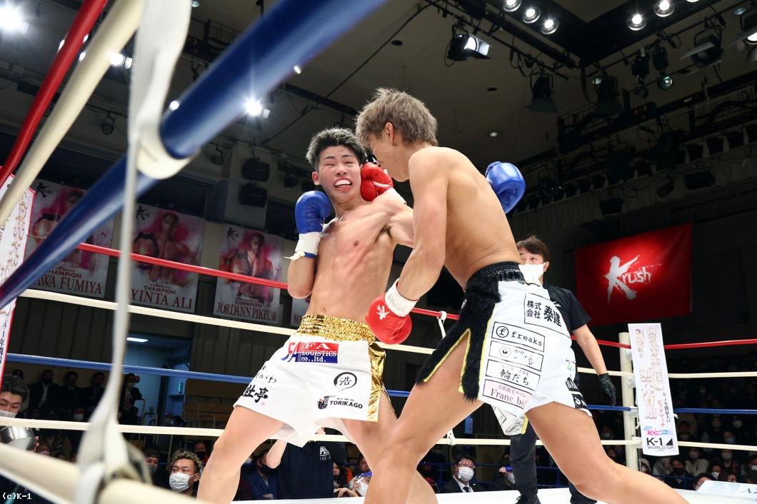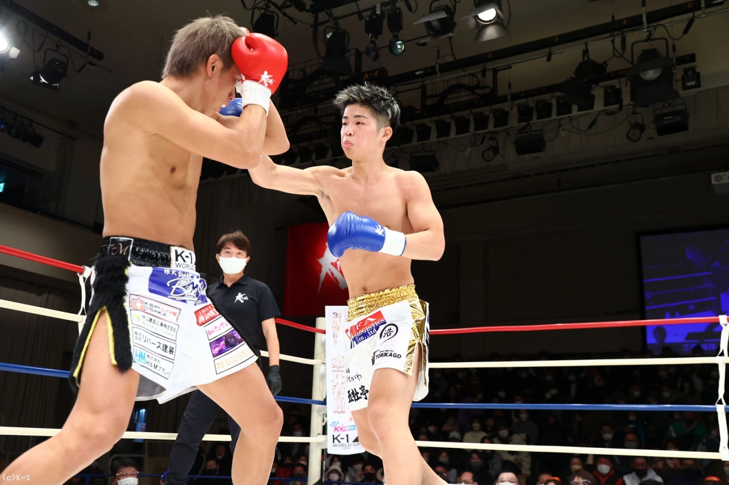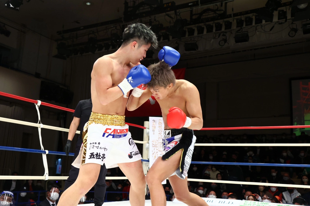 立ち上がった下村は再び前に出るが、三宅はボディストレート、左フックとヒットを重ね、ボディへのヒザと攻撃を散らす。だが下村は屈せず右ストレート、左フックと反撃。しかし三宅が再び右ストレート、左フックと攻める。だが三宅は掴んでのヒザを放ってしまいレフェリーから口頭注意を受ける。