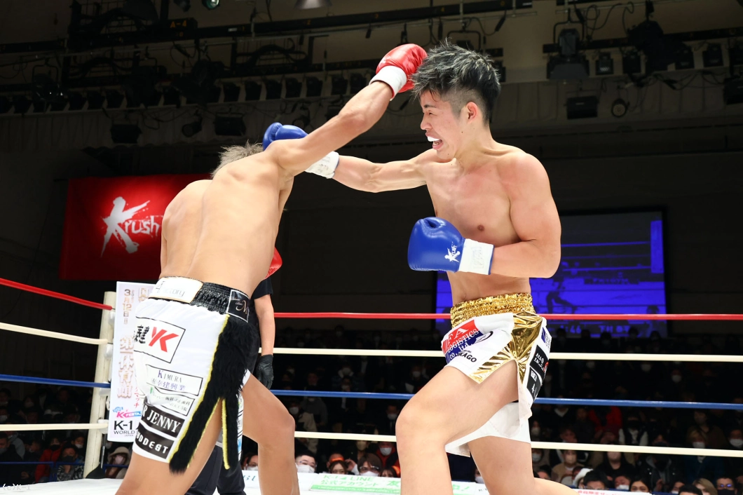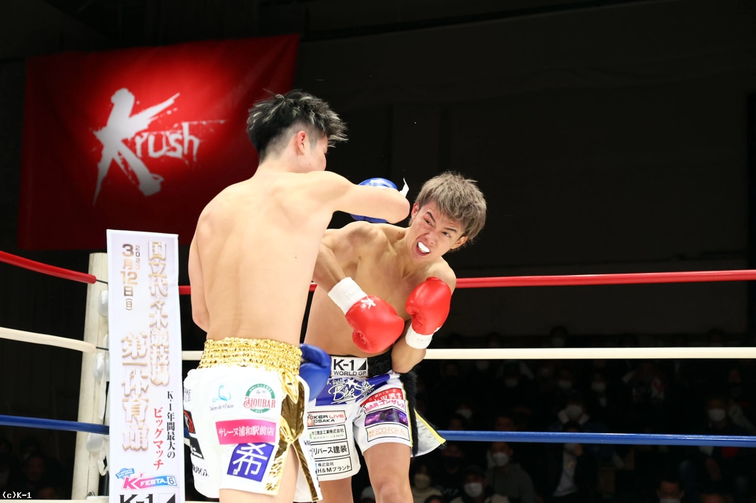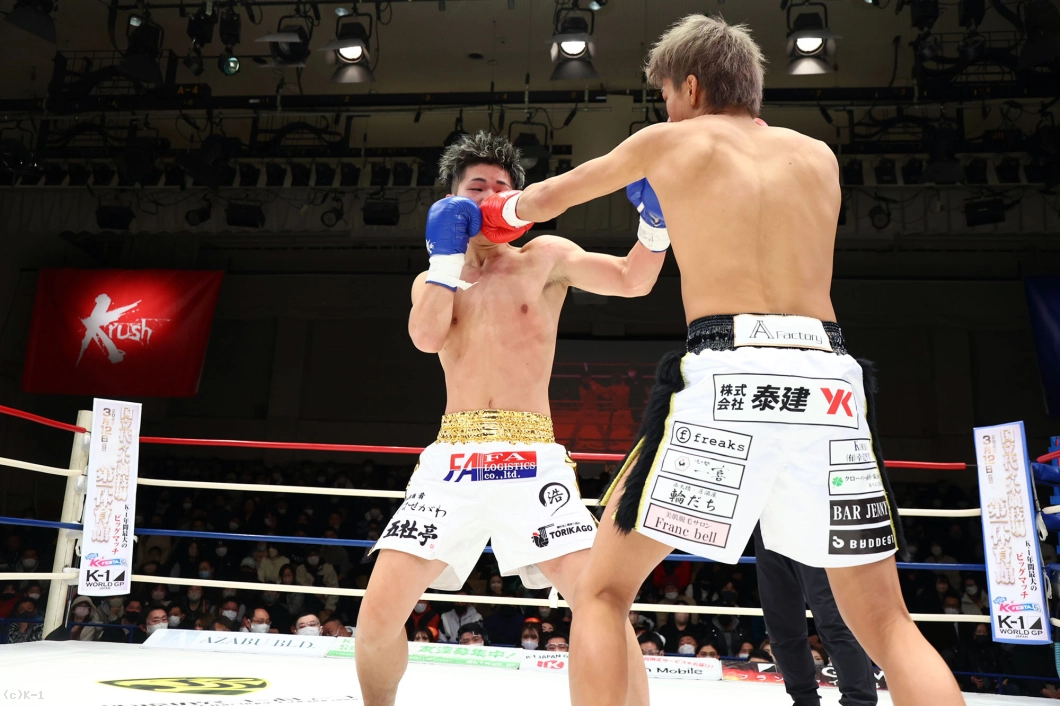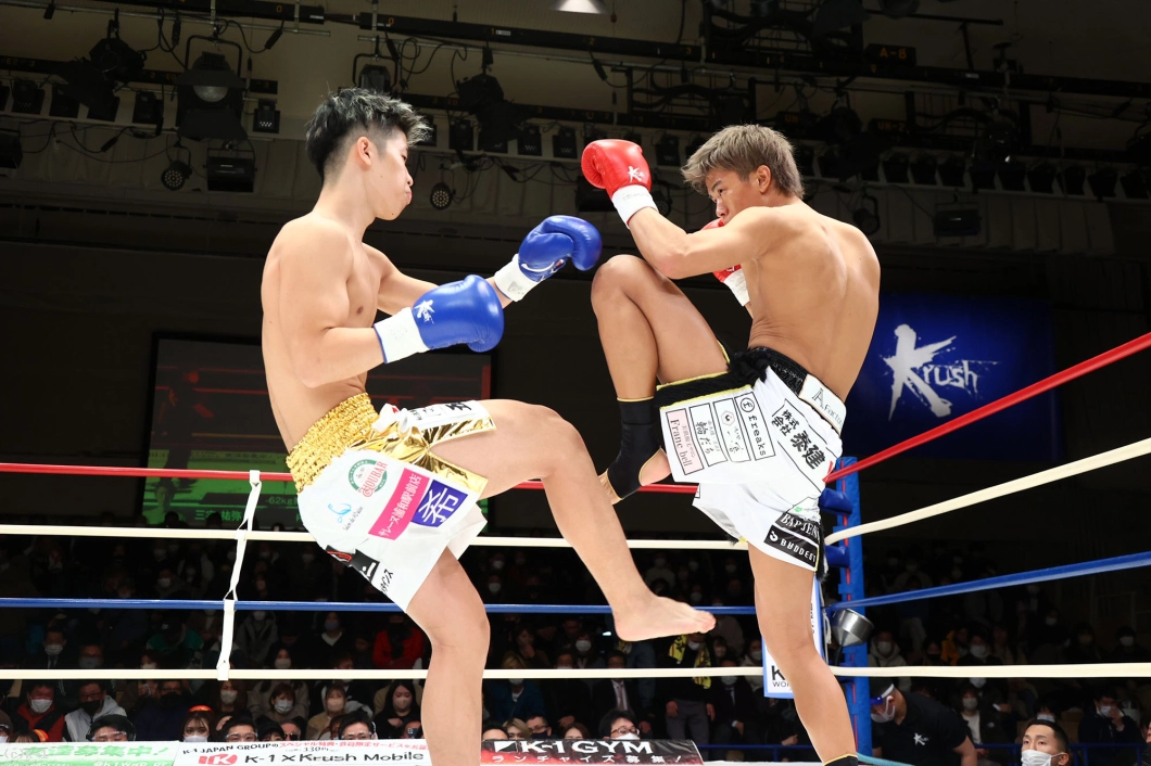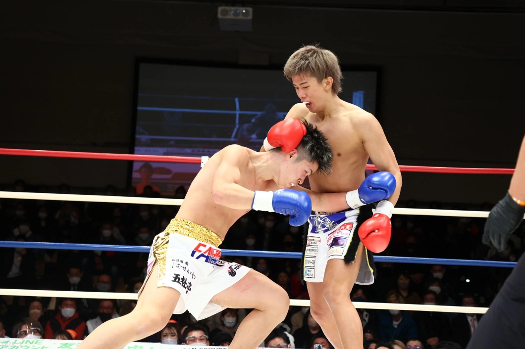 立ち上がった下村は再び前に出るが、三宅はボディストレート、左フックとヒットを重ね、ボディへのヒザと攻撃を散らす。だが下村は屈せず右ストレート、左フックと反撃。しかし三宅が再び右ストレート、左フックと攻める。だが三宅は掴んでのヒザを放ってしまいレフェリーから口頭注意を受ける。