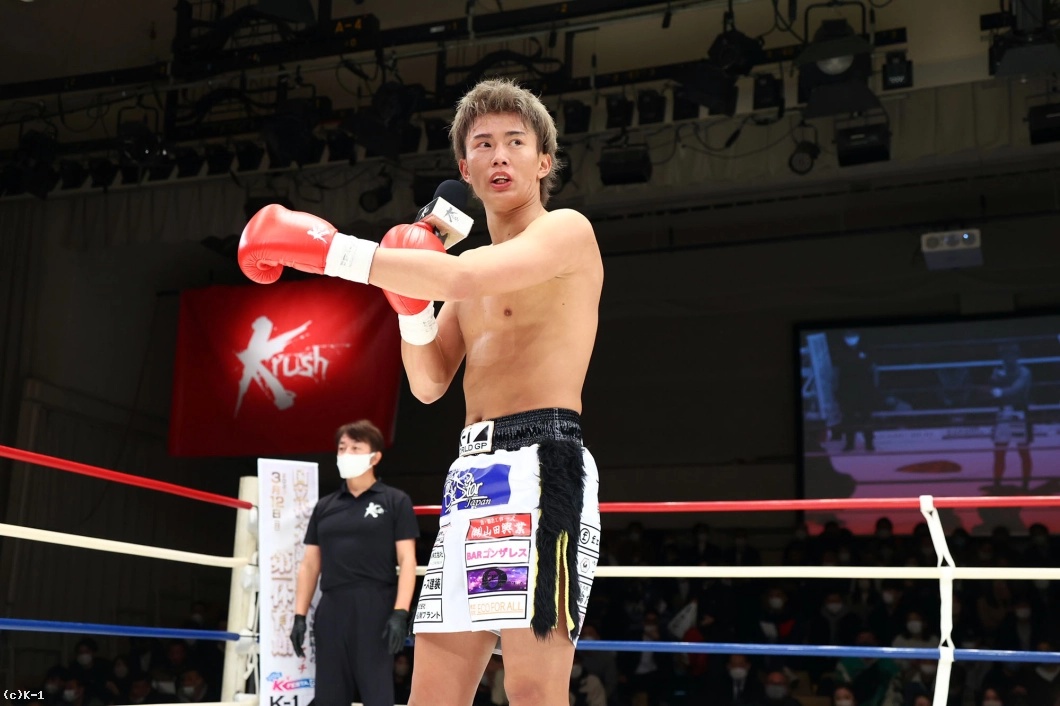 「ちょっと硬かったですね。また危うい試合をしちゃったんですけど、大阪から来てもらって力になって、入場で踊ってこんなので負けたら寒かったし、プレッシャーを感じていて、勝ててホッとしてます。地元の友達も大阪から東京まで来てもらってほんまにありがとうございます。名前だけでも覚えていってください。インスタのフォロワー少ないので、フォローしてください」