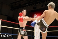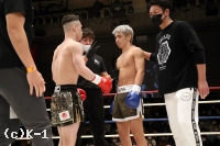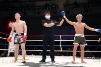 白幡は離れた位置からパンチを出しローいに繋いでいくが、三度(みたび)吉岡にローブローとなってしまい、吉岡はダメージに苦しむ。白幡には警告が出される。