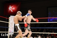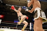 ダメージのある様子の吉岡は攻防に戻るが、白幡のローが下腹部をかすめると再び顔を歪める。ややインターバルの後で再開。