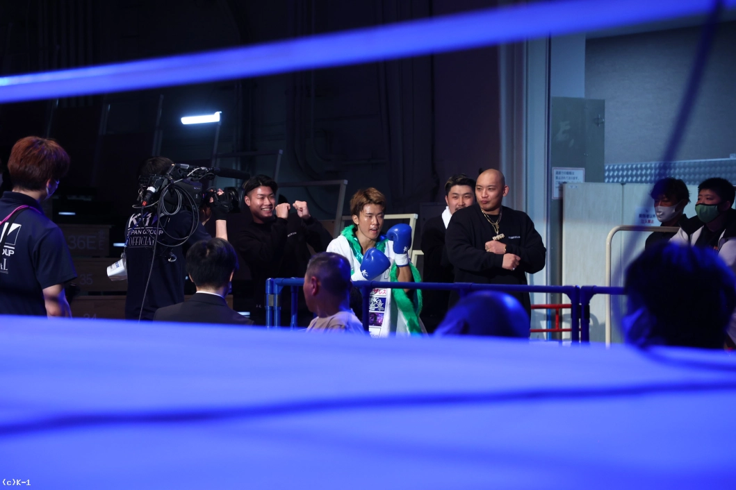 再開すると岩﨑はやはり冷静さを崩さず、左フックを打ち込み三宅はマウスピースを吐き出す。