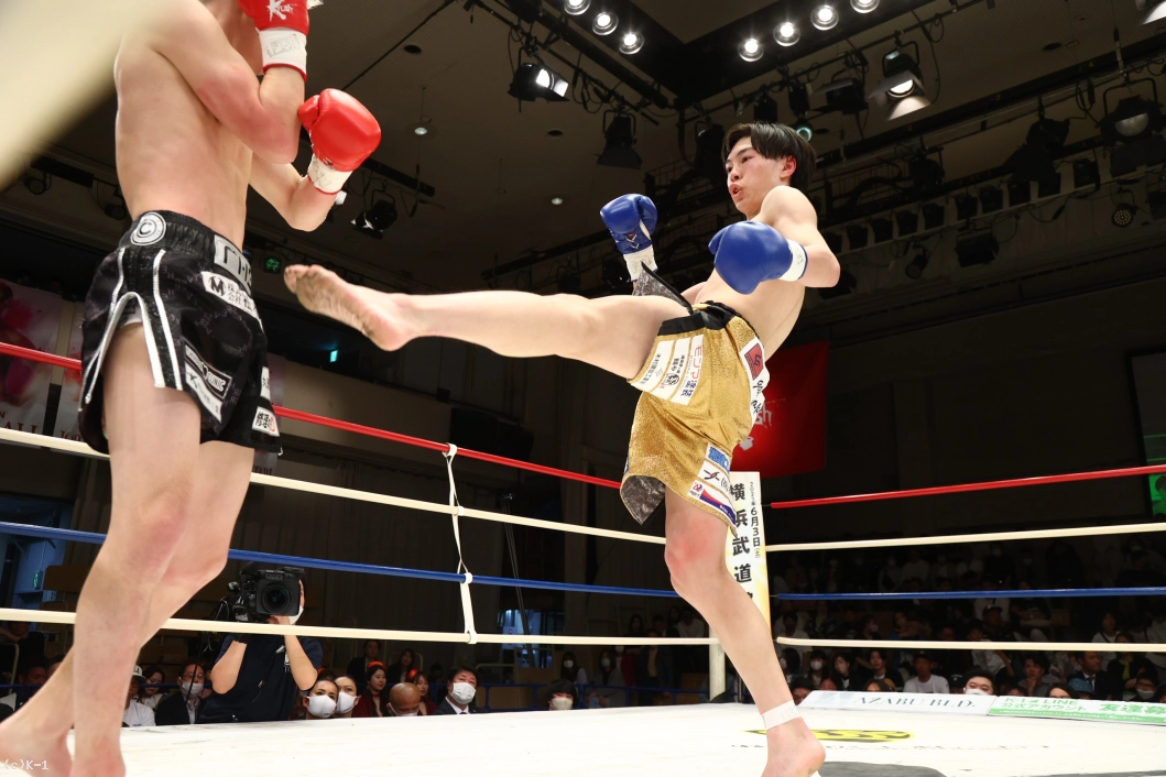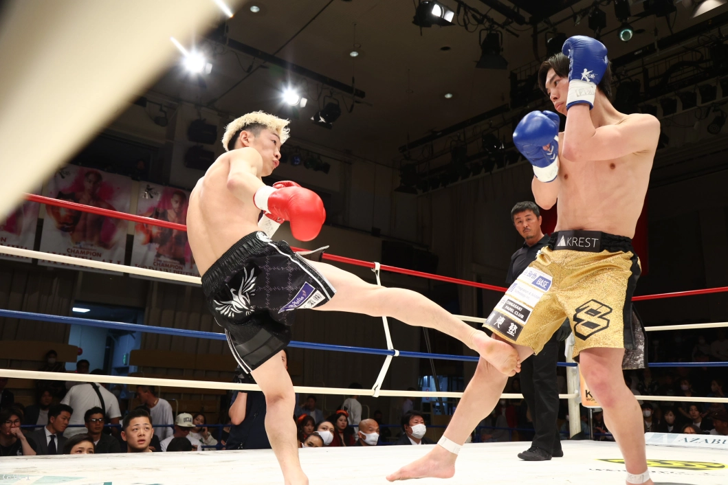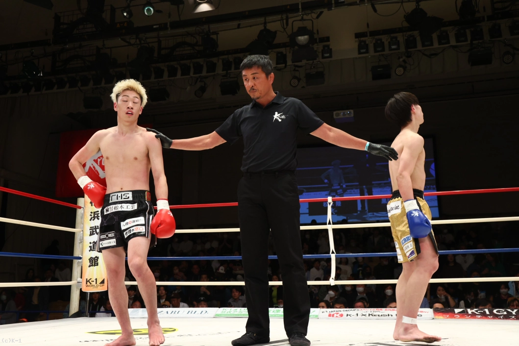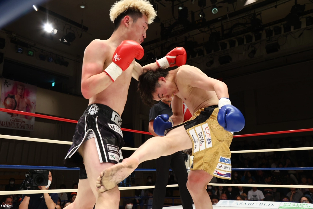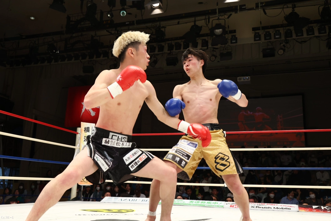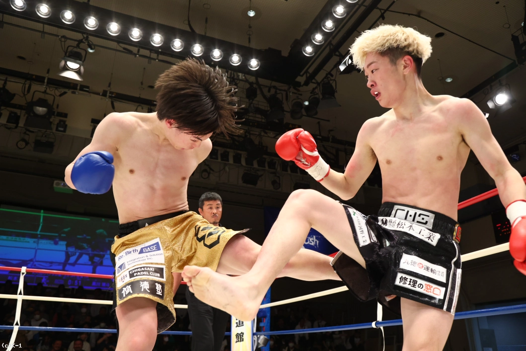 延長R、両者リング中央で接近戦。松本は石器戦でのパンチ、黒川が左ローを連続で蹴り返す。松本は脚が効いたか徐々に黒川に押されるようになっていく。判定は10-9(黒川)、10-9(松本)、10-9(黒川)の2-1で黒川。延長で松本を振り切って勝利を収めた。