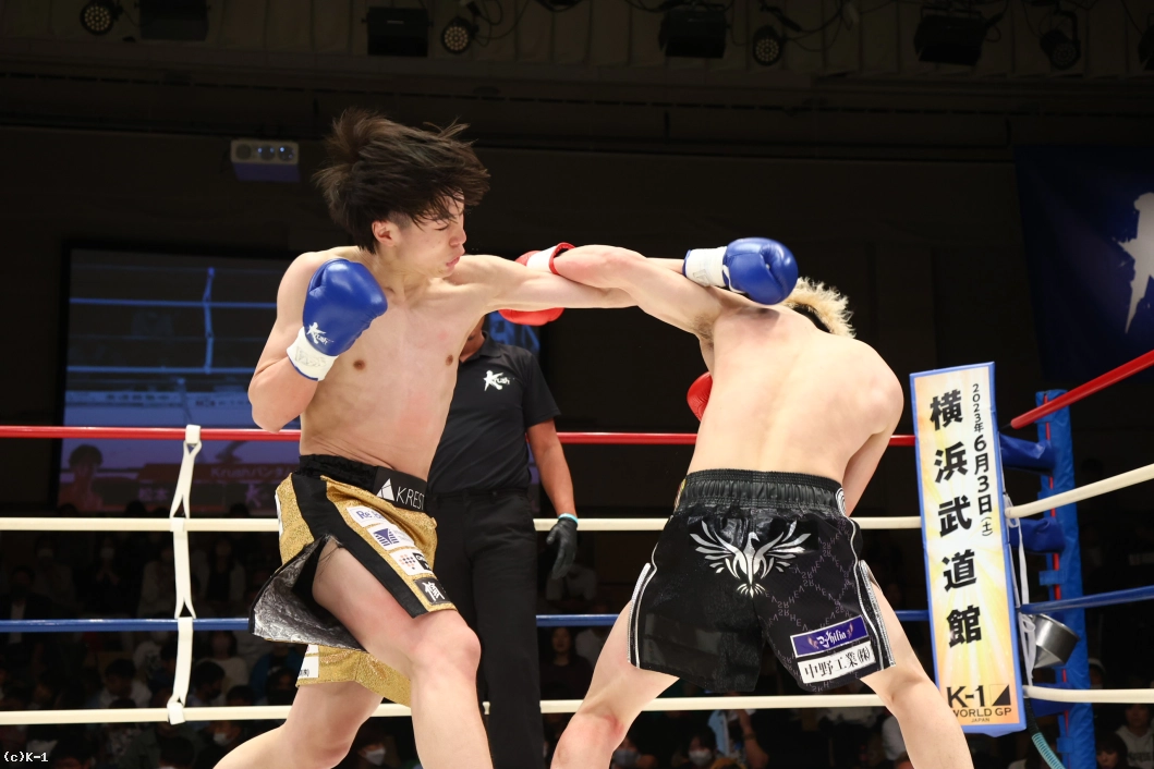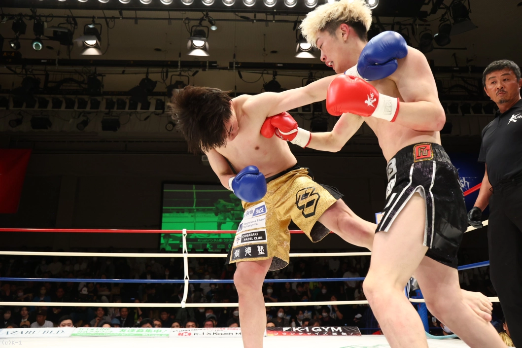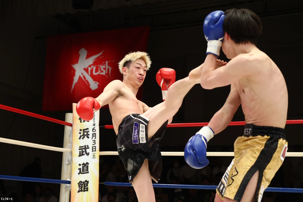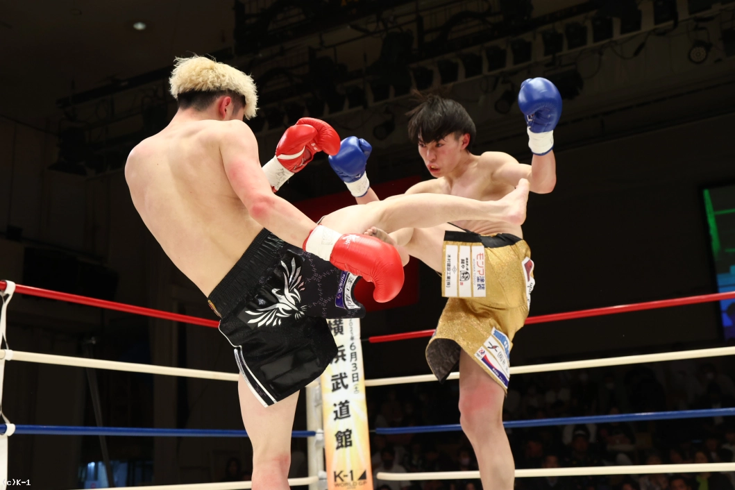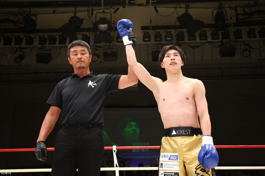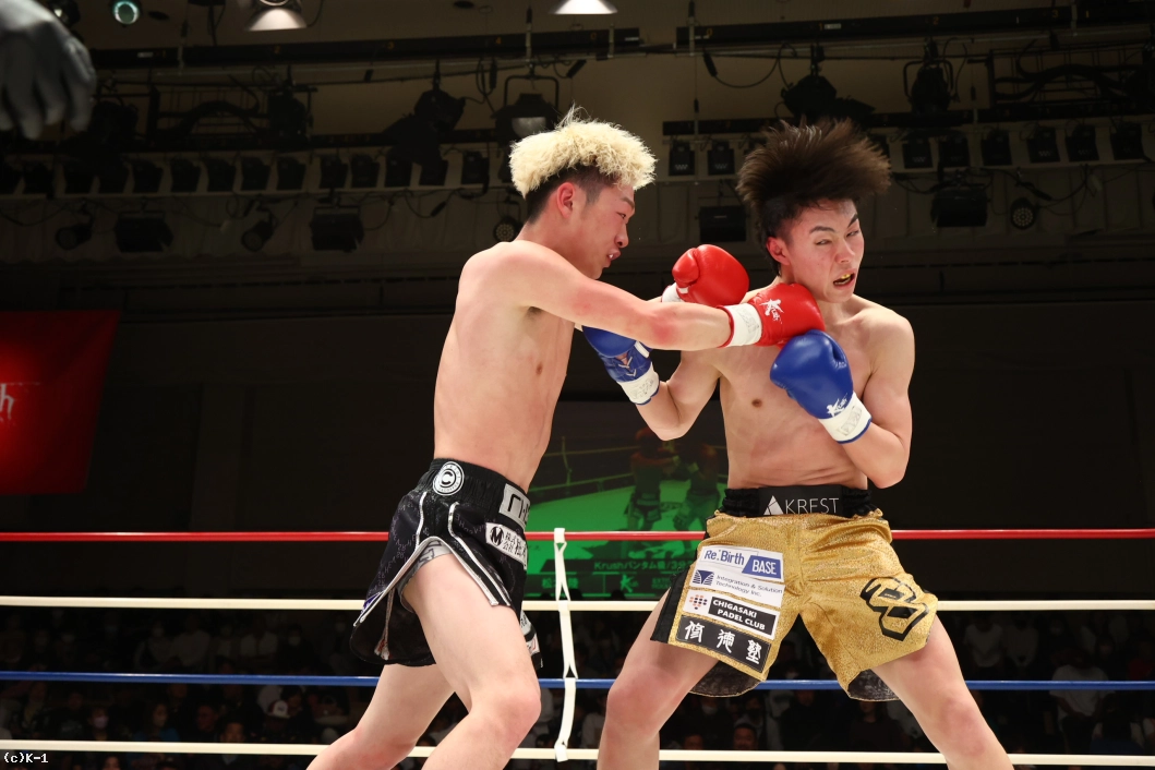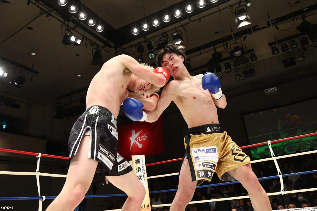 延長R、両者リング中央で接近戦。松本は石器戦でのパンチ、黒川が左ローを連続で蹴り返す。松本は脚が効いたか徐々に黒川に押されるようになっていく。判定は10-9(黒川)、10-9(松本)、10-9(黒川)の2-1で黒川。延長で松本を振り切って勝利を収めた。