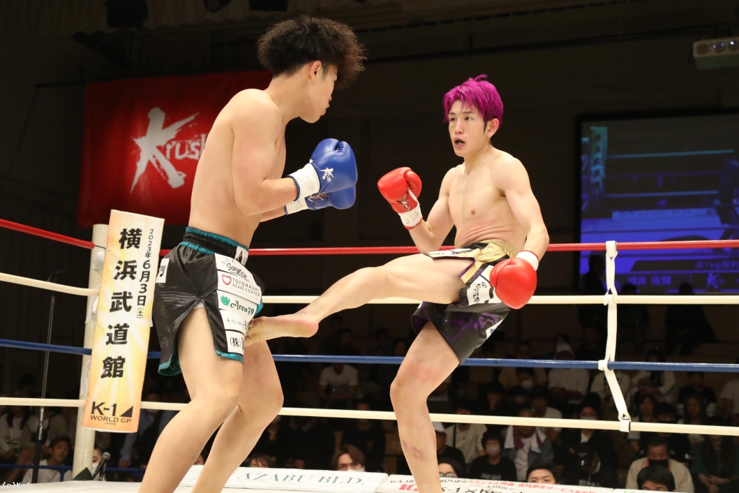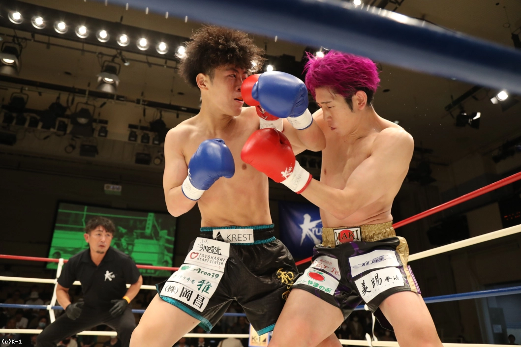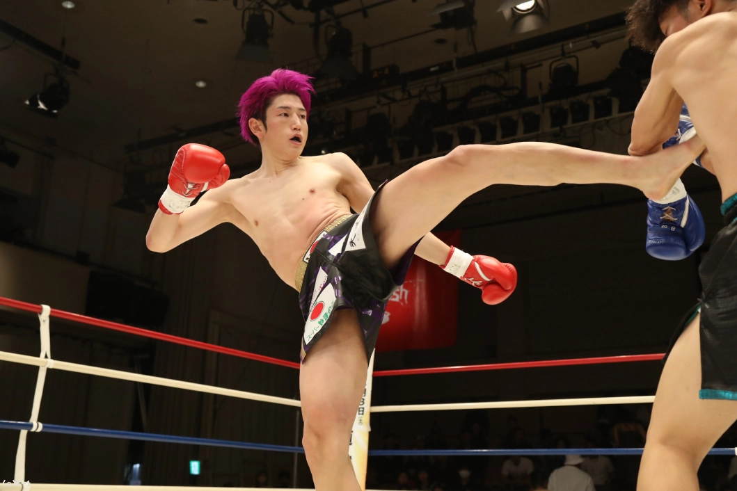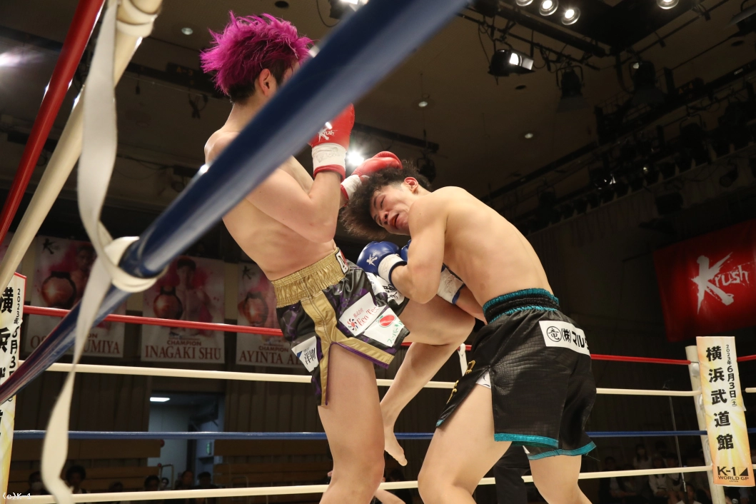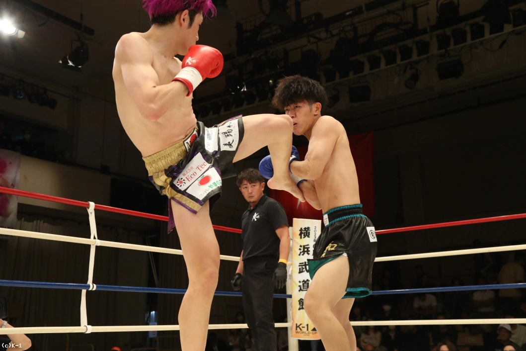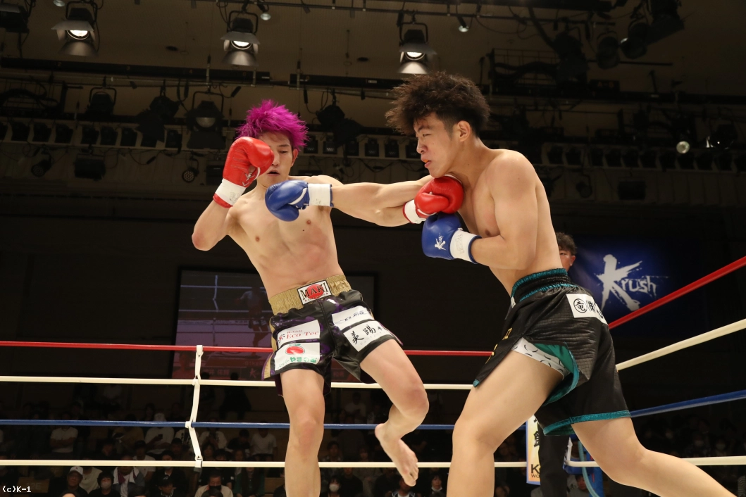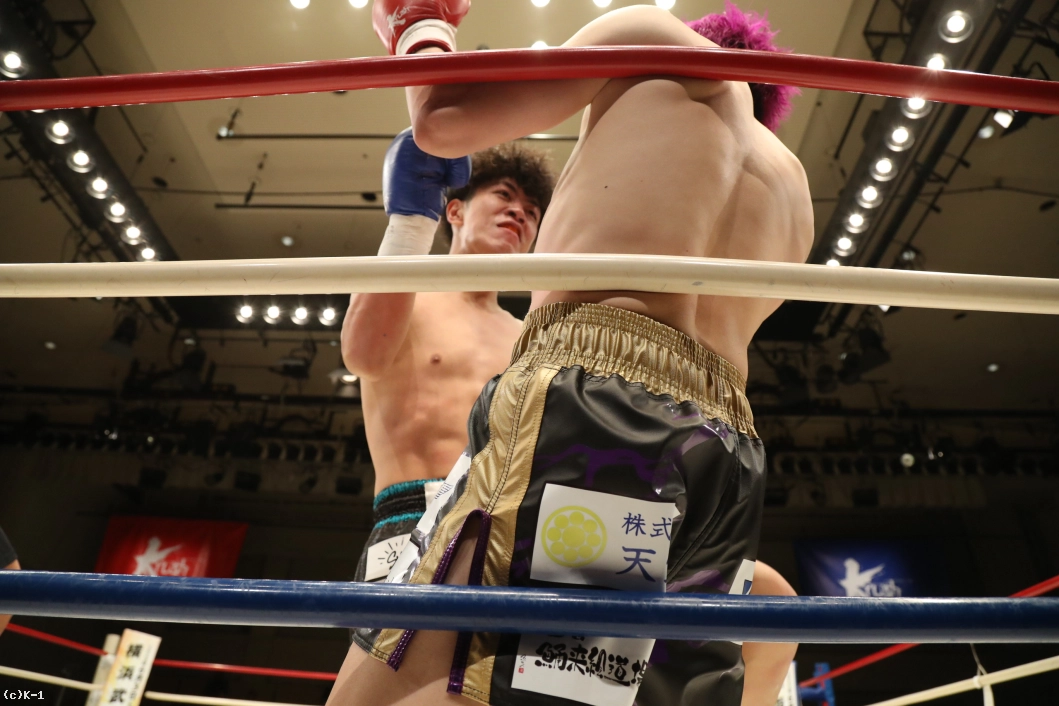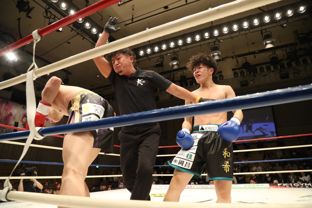 1R、サウスポーの増井は左ミドル、左ローから左ストレートを放っていく。提髪は蹴りを意に介さず右ストレート、左フックを返す。増井の蹴りがローブローとなってしまいインターバルが取られるが、再開すると提髪は頭を振りながらパンチを振るっていく。圧力を掛け増井をロープ際に下げさせると左フックで動きを止め、左フックを打ち込んで増井をKOした。