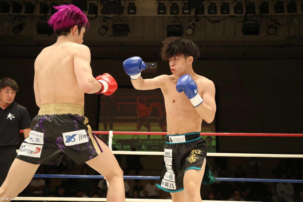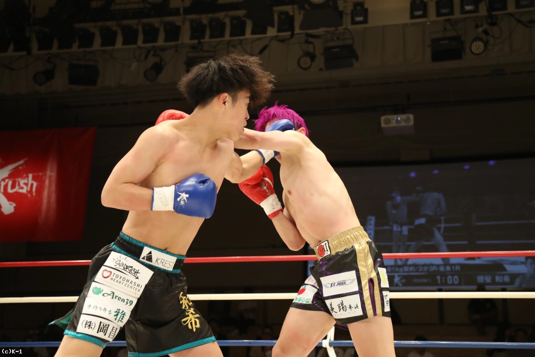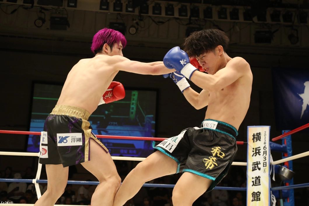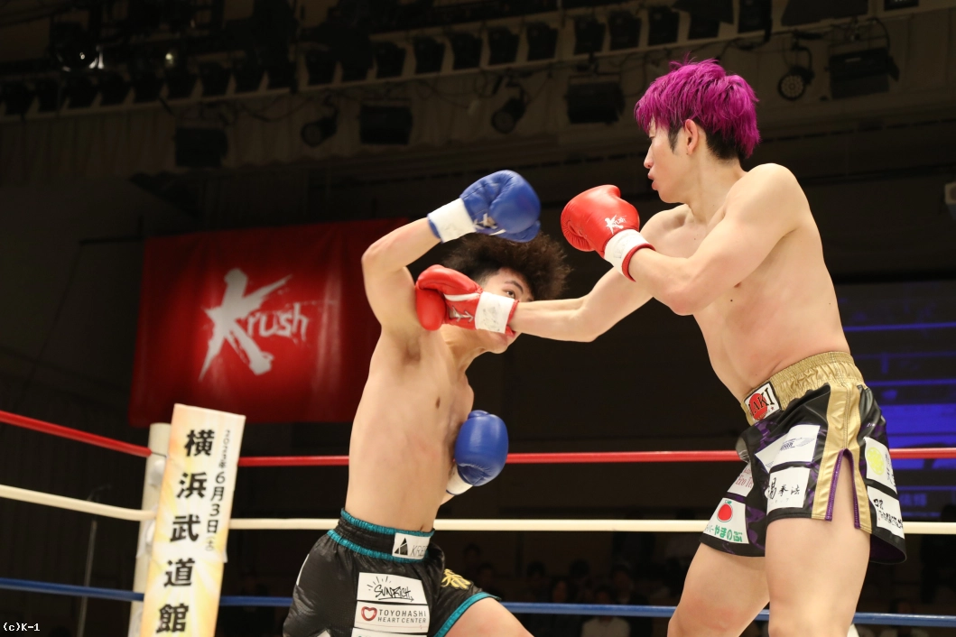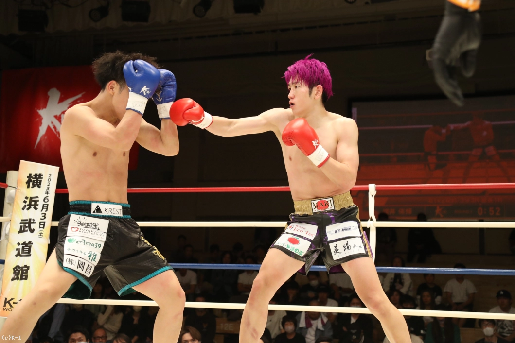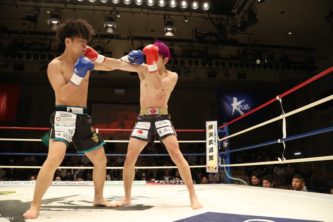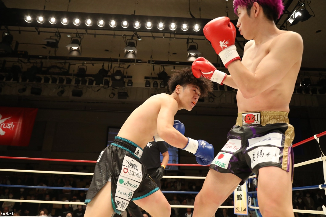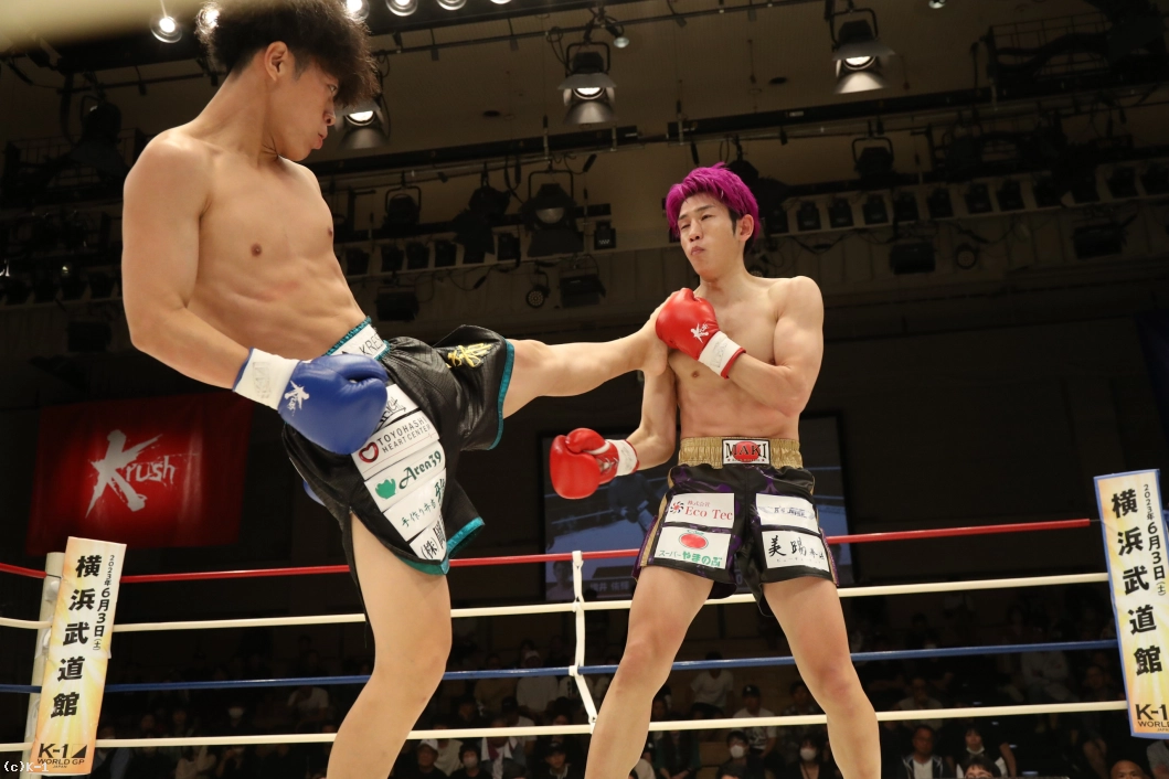 1R、サウスポーの増井は左ミドル、左ローから左ストレートを放っていく。提髪は蹴りを意に介さず右ストレート、左フックを返す。増井の蹴りがローブローとなってしまいインターバルが取られるが、再開すると提髪は頭を振りながらパンチを振るっていく。圧力を掛け増井をロープ際に下げさせると左フックで動きを止め、左フックを打ち込んで増井をKOした。