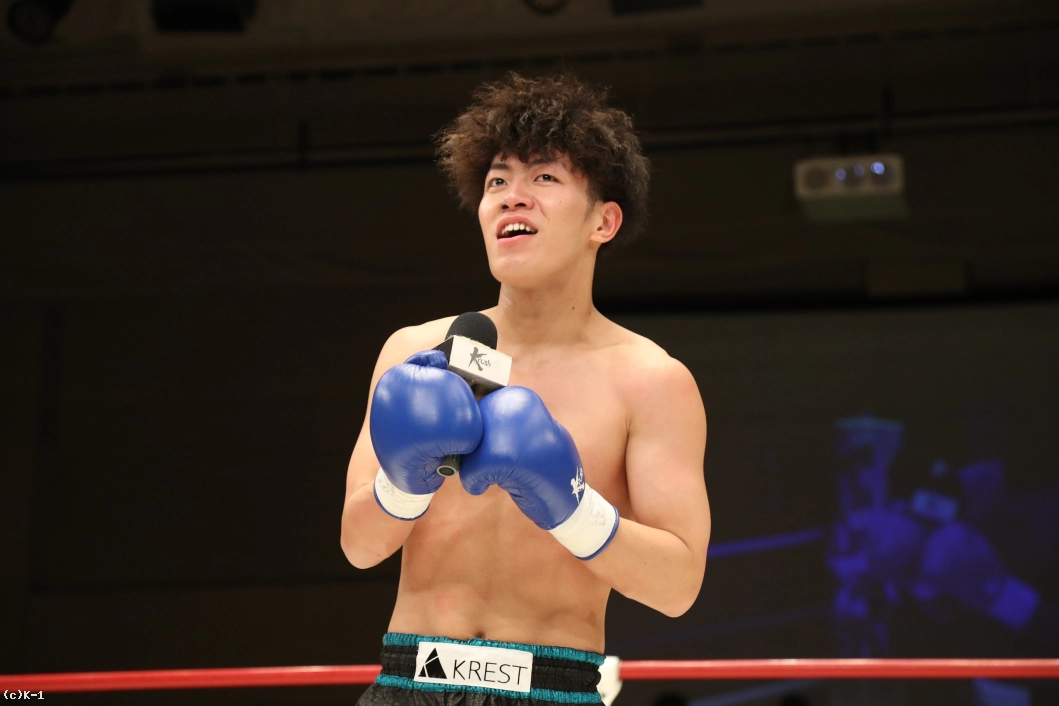 「1週間前に急きょ普段より軽い階級で試合に応じてくれた増井選手ありがとうございました。試合前に煽ってくれたので、ぶっ倒してやろうと思って気合いが入りました。この後、岡嶋形徒が僕よりいい試合するんで、形徒の応援よろしくお願いします」