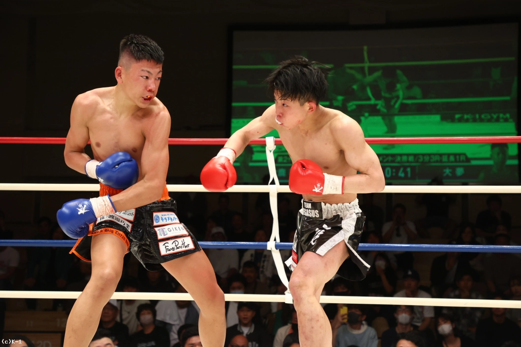 1R、大夢はジャブ・前蹴りを飛ばしていくが、大鹿が右ストレートをヒット。前に来る大夢に大鹿はジャブ、左ミドル、左フックでストップする。大夢は勢いを落とさず、前に出て大鹿に迫る。2R、大夢は前に出る圧力を増す。しかし踏み込むタイミングをうかがうところで大鹿が右ストレートを当てる。大夢も踏み込んでパンチを振るうが、大鹿はそれをかわして当てさせない。