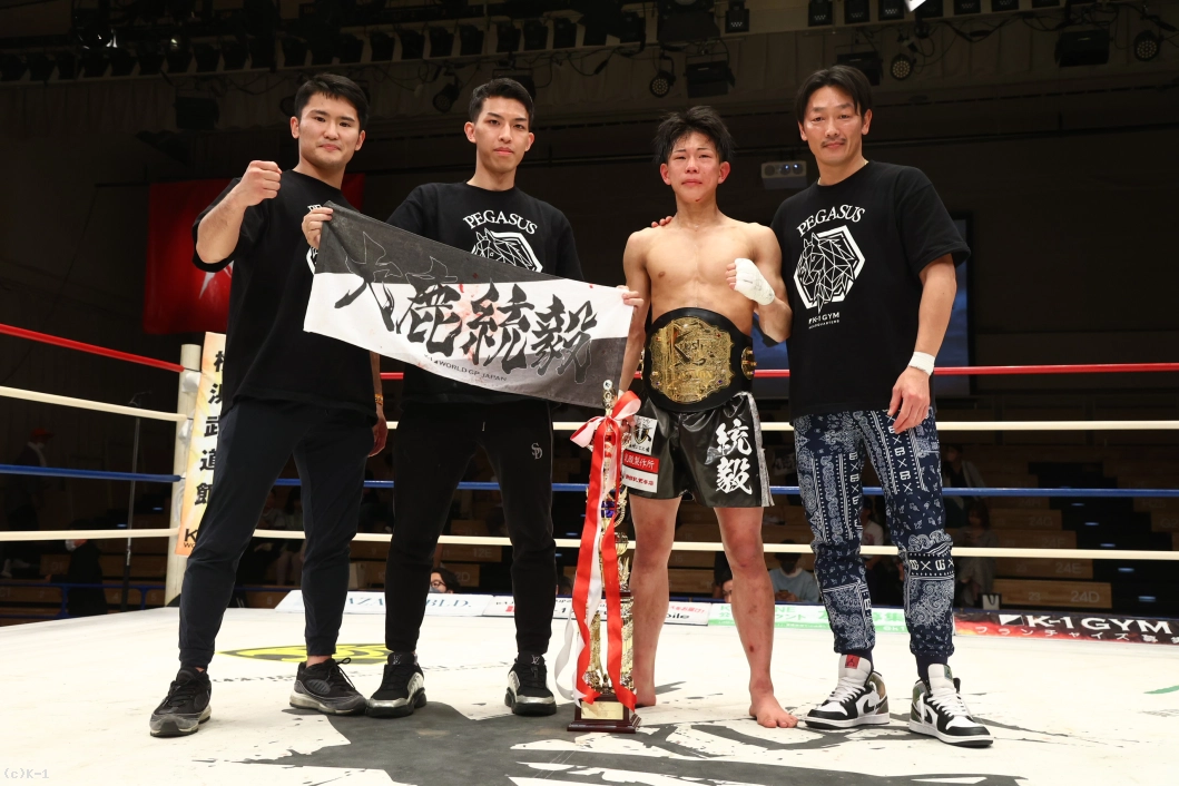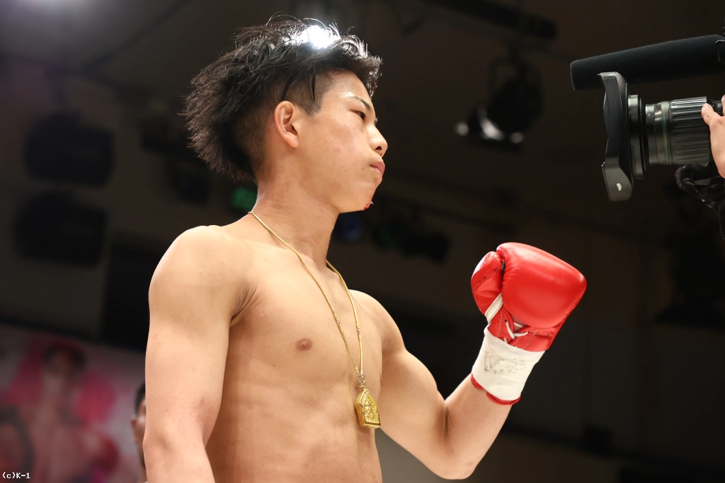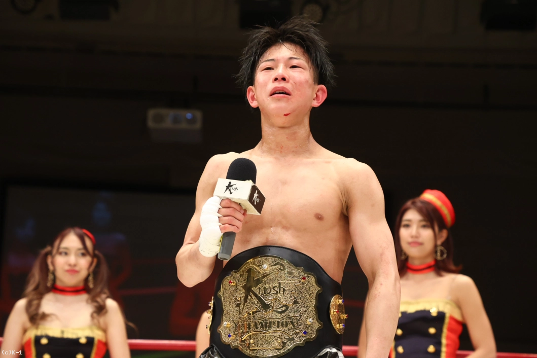 「今日はたくさんの応援ありがとうございました。対戦してくださった山脇選手、大夢選手、ありがとうございました。ジムの代表の(梶原)龍児さん、いろんな人に支えられて今ここに立ってます。ありがとうございます。減量大変でしたがお父さん、お母さん、兄弟の力のおかげです。これからもっともっと強くなるので、たくさんの応援よろしくお願いします」