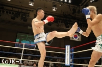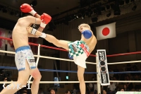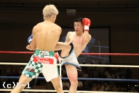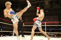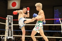 2R、竹内がローブローで注意1を受ける。健介が左の蹴りを上下に散らし、遠い距離から左ストレート。竹内は距離を取りながら右ミドルを強打する。ロープを背負った竹内が左フックを振ると、受けた健介が転倒するがノーダウン。リング中央で両者パンチを交換すると、健介が左右フックをヒットさせ竹内の動きが止まる。