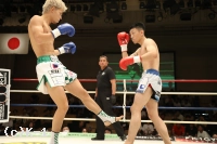 1R、サウスポーの健介が右前蹴り、左ストレートでプレッシャーをかける。竹内は健介の入り際にカウンターを合わせ、飛び込む健介に右フックをヒットさせる。先に手を出す健介に竹内がカウンターを合わせ、離れ際に右ミドルで押し返す展開が続く。