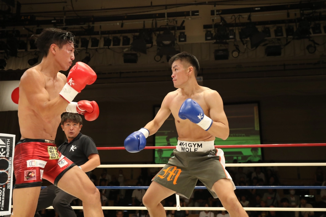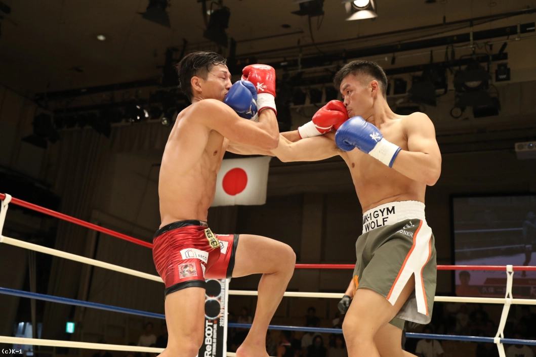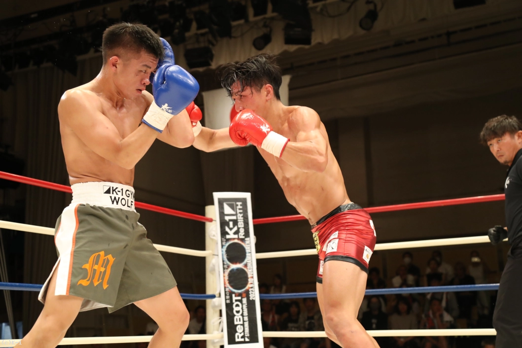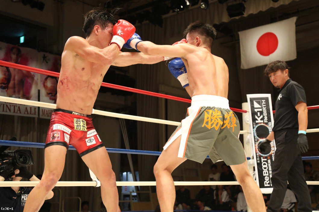 2R、勝輝の右カーフで久保がややバランスを崩す。久保はガードを固めて前進し、左ジャブから右ロー。勝輝は落ち着いて久保の入り際に左フックを合わせ右ストレートで追撃を見せる。