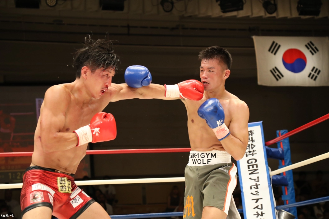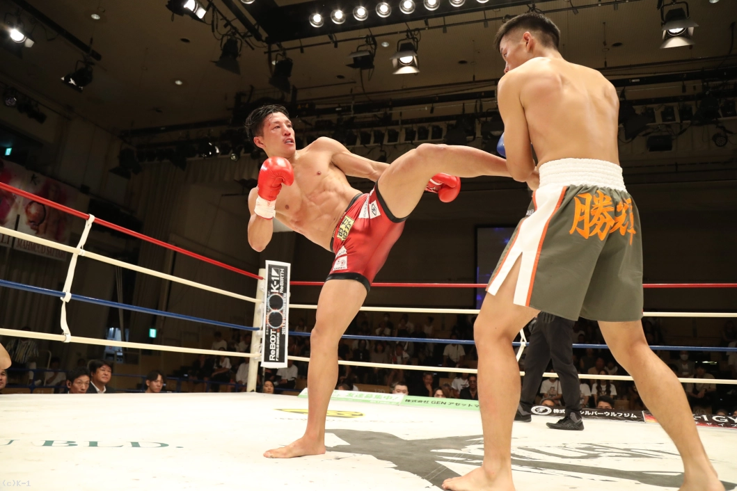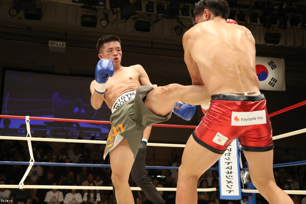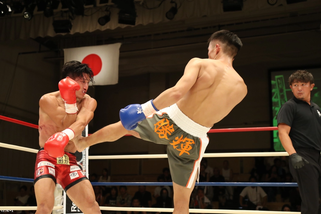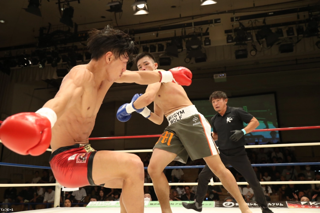2R、勝輝の右カーフで久保がややバランスを崩す。久保はガードを固めて前進し、左ジャブから右ロー。勝輝は落ち着いて久保の入り際に左フックを合わせ右ストレートで追撃を見せる。