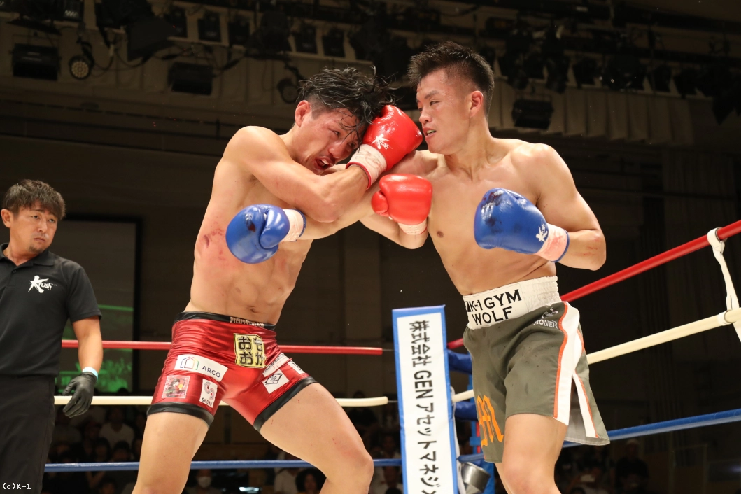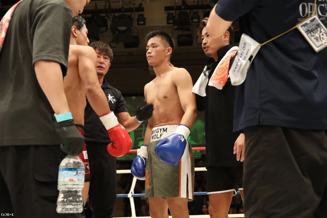 3R、前進する久保は左右ストレート。入り際に右バックハンドブローを振り回す。勝輝は久保の入り際に合わせて右アッパー。離れれば右ストレート、右ミドルで突き放す。勝輝が多彩な攻撃で久保を追い詰めるも、久保は被弾しながらも前進を止めずにワンツーを放ち続ける中で終了のゴングを迎えた。