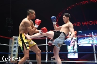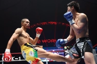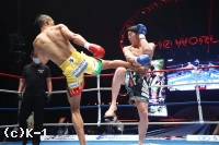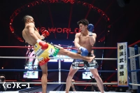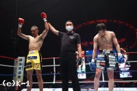 3R、前に来た寧仁太に實方は左ストレートをヒット。だがすぐ寧仁太も反撃に転じ、實方がバランスを崩すと得意の飛びヒザを放つ。しかし實方は直撃させず、左ストレートで寧仁太の顔面をとらえる。寧仁太も右ボディストレートを入れて實方を前に出させず、飛びヒザも繰り出していく。判定は30-28、30-28、30-28の3-0で寧仁太。対抗戦初戦はK-1が先勝した。
