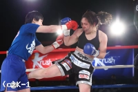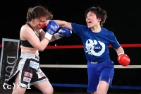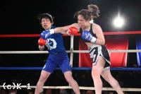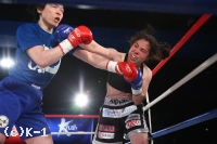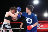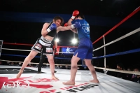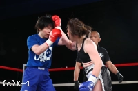 2R、小澤は右のパンチをフック・アッパーと放って当てていく。右フックと右ローで上野も打ち合うが、小澤の圧力が上回る。小澤は後半パンチの威力を増し、右ストレート・右フックを連続で打ちつけラウンドを終える。3R、小澤は左ガードを高く上げ、上野の右パンチを防いで右ロー、右ストレート、右ヒザ蹴り。上野もパンチに右ローを入れて攻める。右ストレート・右フックで上野が攻勢となれば、小澤も右ストレート・右クロスで反撃して終える。判定は30-27、30-27、30-27の3-0で小澤。3Rを通じて圧力で上回り勝利した。