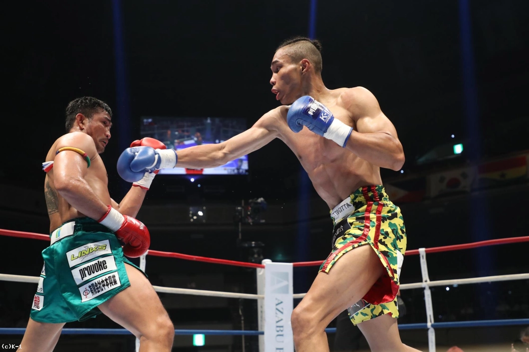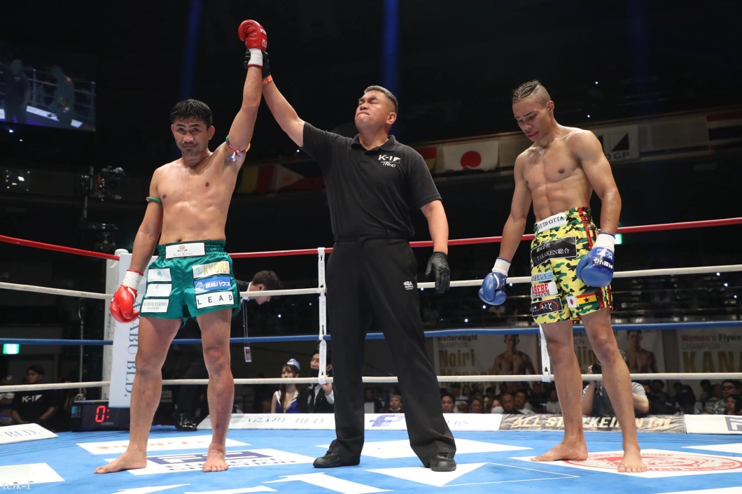 2Rもジョムトーンは前に出て左ミドル。寧仁太はこの左ミドルを続けざまに受けてしまい、右腕が紅潮してくる。寧仁太は機先を制され、手数が減ってくる。3Rもジョムトーンは左ミドルを基調に攻める。ジョムトーンはボディストレートの後で顔に左ストレートを突き刺しダウンを奪う。立ち上がった寧仁太にジョムトーンは無理して攻めず、しかし左ミドル、目線でフェイントしての左ストレートと当てて終える。判定は30-26、30-27、30-26の3-0でジョムトーン。ウェルター級でも強さを見せた。