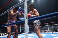 2Rも軍司は前に出てパンチで倒しに行く。右ストレート、アッパー、ボディと当てる軍司だが、ダウサヤームは倒れない。ダウサヤームも持ち応えバックブローで反撃。軍司は右アッパー、ボディフローと強打でダウンを迫るが、やはりダウサヤームは持ち応える。