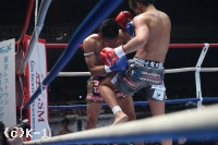 1R、軍司は開始からすぐ前に出てジャブ、左右のフックと上下に打ちつける。やや面食らったかのダウサヤームだが、ヒザ蹴り、大ぶりのフック、足払いと反撃する。軍司は距離を詰めて左ボディフックからフック、ストレートと猛攻をかける。