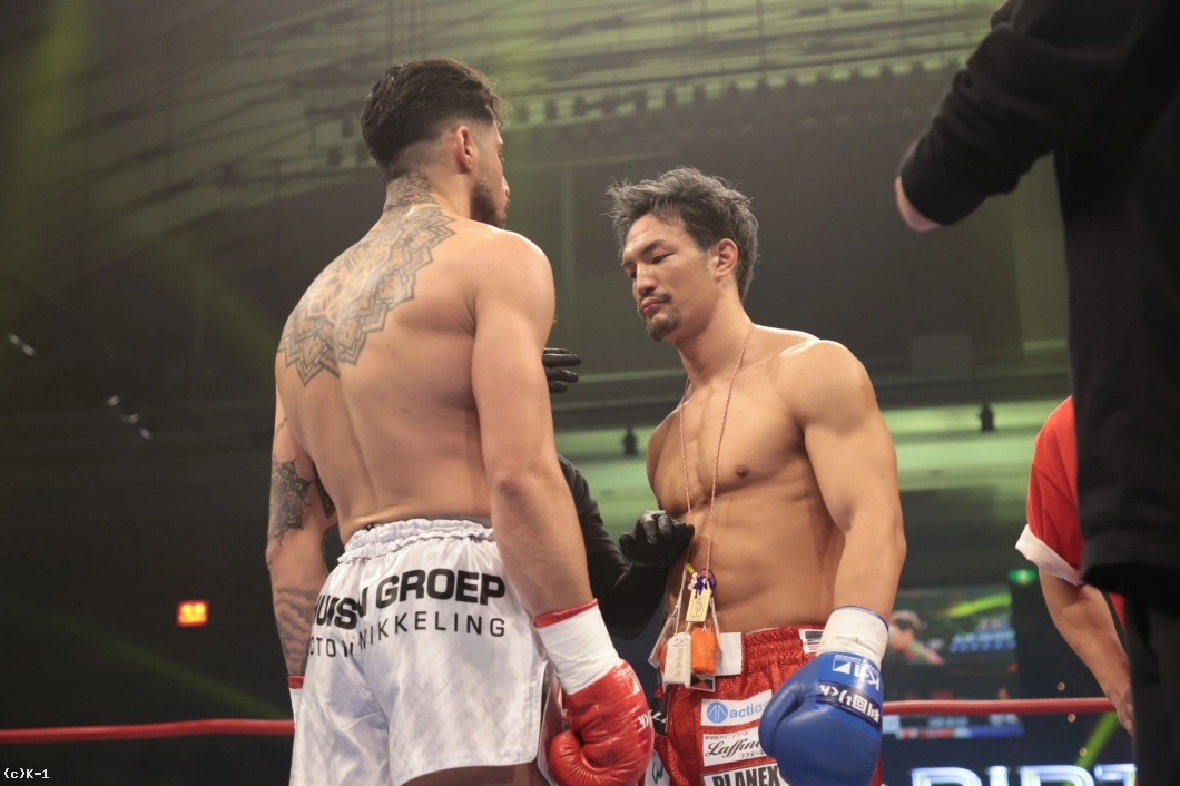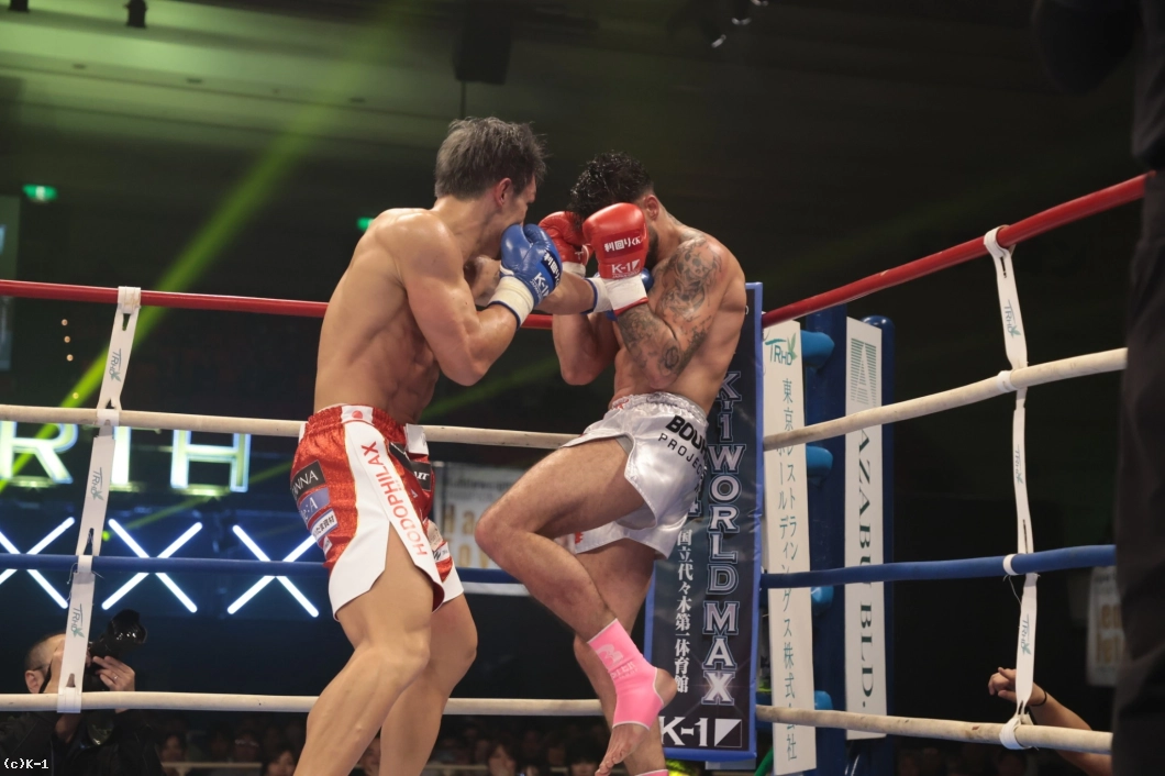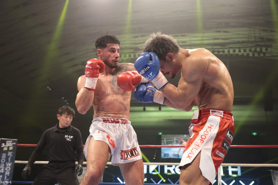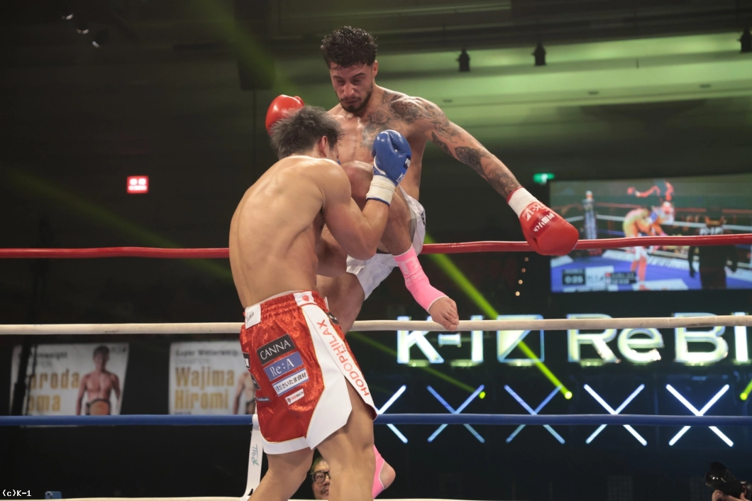 3R、ハッサンはインロー。松倉もインローを返すが、これはローブローに。ハッサンは前蹴り、インロー。松倉の前蹴りに、ハッサンは右を顔面へ。下がる松倉に、ハッサンがギアを上げる。松倉は左ボディ。ハッサンがヒザ蹴り。松倉の右ボディ。ハッサンは右ショート。ハッサンはハイキック。松倉はインロー、左、右フックを返して判定へ。1-1でドローとなり、延長ラウンドへ突入となった。
