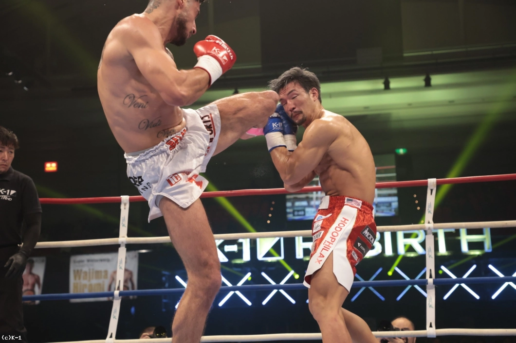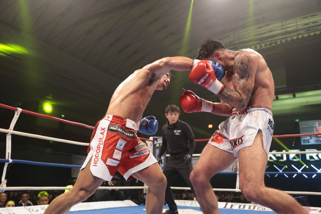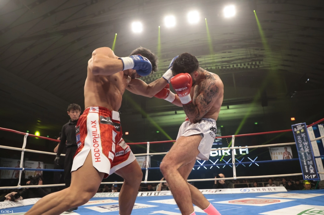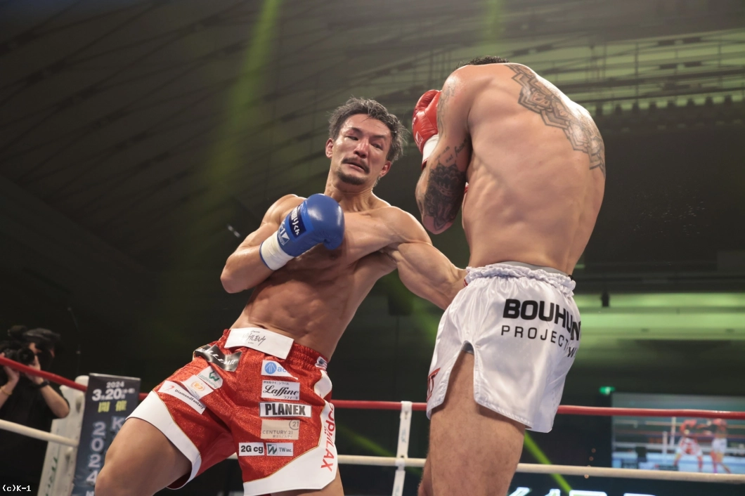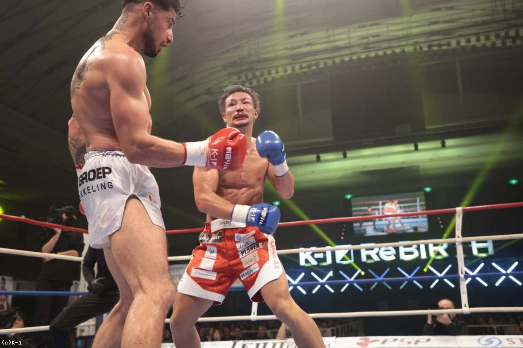 3R、ハッサンはインロー。松倉もインローを返すが、これはローブローに。ハッサンは前蹴り、インロー。松倉の前蹴りに、ハッサンは右を顔面へ。下がる松倉に、ハッサンがギアを上げる。松倉は左ボディ。ハッサンがヒザ蹴り。松倉の右ボディ。ハッサンは右ショート。ハッサンはハイキック。松倉はインロー、左、右フックを返して判定へ。1-1でドローとなり、延長ラウンドへ突入となった。