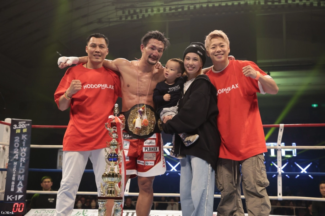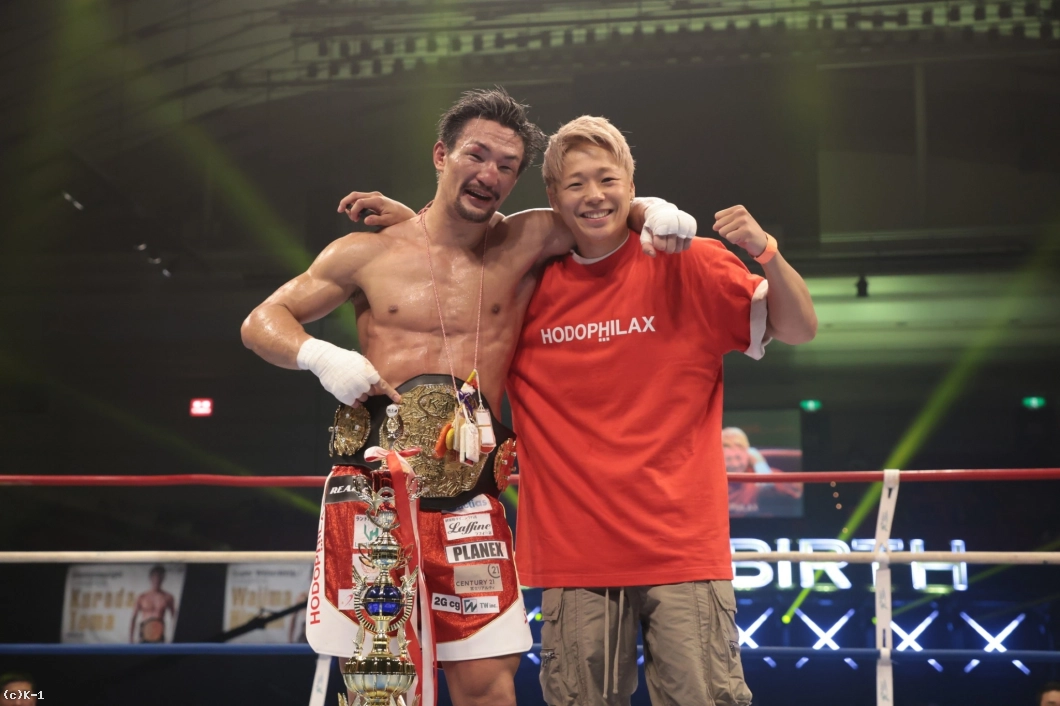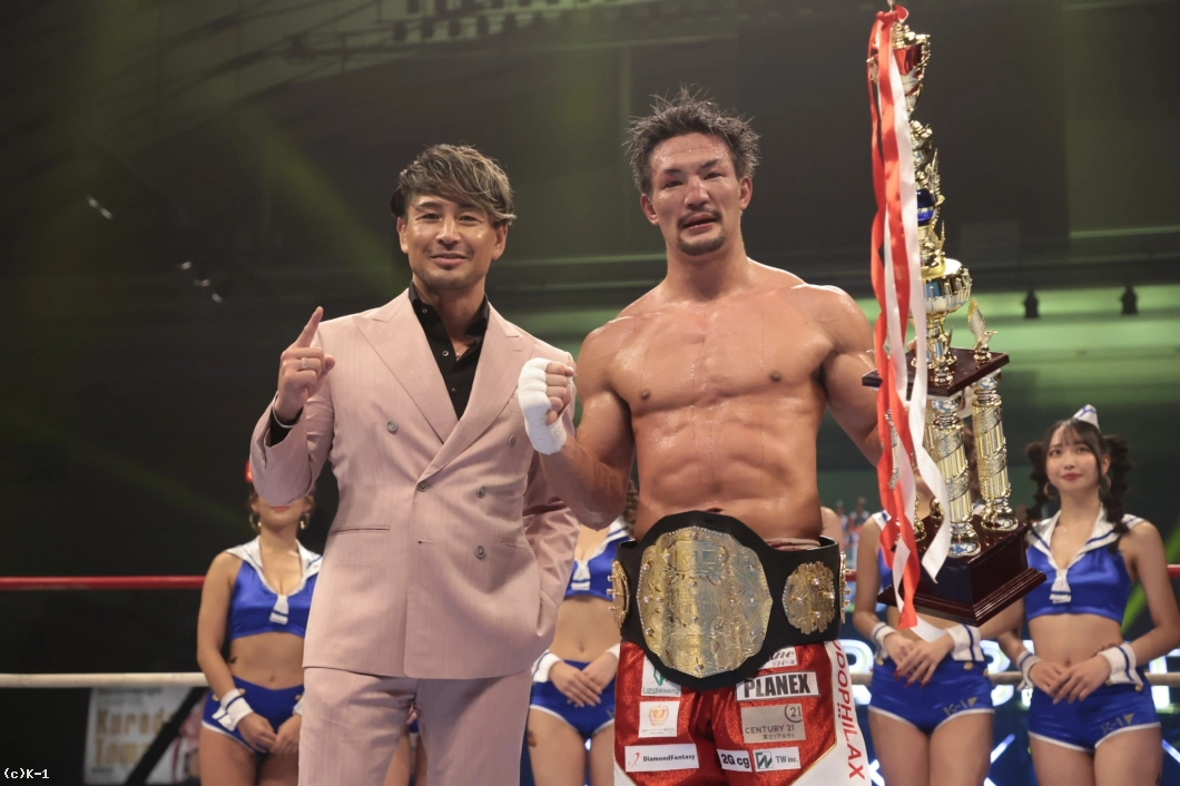 新王者となった松倉は顔がボコボコに腫れて涙、武尊も涙を流して抱き合った。王者になった松倉は「3週間前に足の小指を骨折して歩けなくて怖くて、靴も履けなくて怖くて。周りの人が支えてくれてリングに立つことができました。本当によく、みんな挑戦した方がいいと思います。ずっと、ひとつのことを続けていくと挑戦は始めた時点で成功なんじゃないかなと。みんなとは格闘技を通してできているんで、大切にしていきます」と挨拶した。