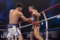 1R、互いにサウスポー構え。海斗はローキック。宇佐美も左ローキック、右のパンチ、さらに右ハイキックを飛ばす。海斗はパンチ連打。そこに宇佐美は右ストレートをヒット。