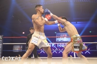 1R、璃久はカーフキック。アビラルもカーフキックを返すが、璃久はパンチを上下に打ち分ける。アビラルの左フック。右、左の連打が次々とヒットして璃久がスタンディングダウンを奪う。打ち合いに持ち込みたい璃久は、右、左をヒットさせてKOを狙うもラウンド終了。