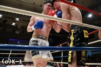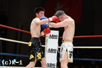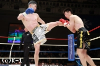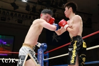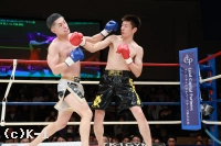 1R、サウスポーの川島は、ラウンド開始直後、左ストレートからの左ミドルのコンビネーションを見せる。さらに前手で相手を触りながら、左ハイキックに左ボディ。コーナーに詰めると、パンチのラッシュでダウン寸前まで追い込むが、松本が耐える。松本も右のストレートを出すが、川島はスウェーでかわしていく。