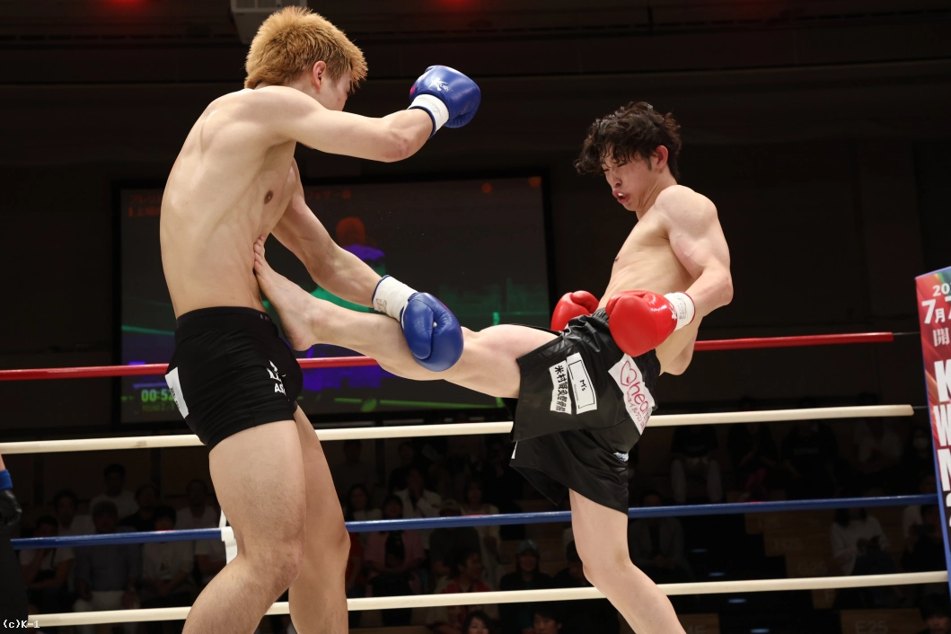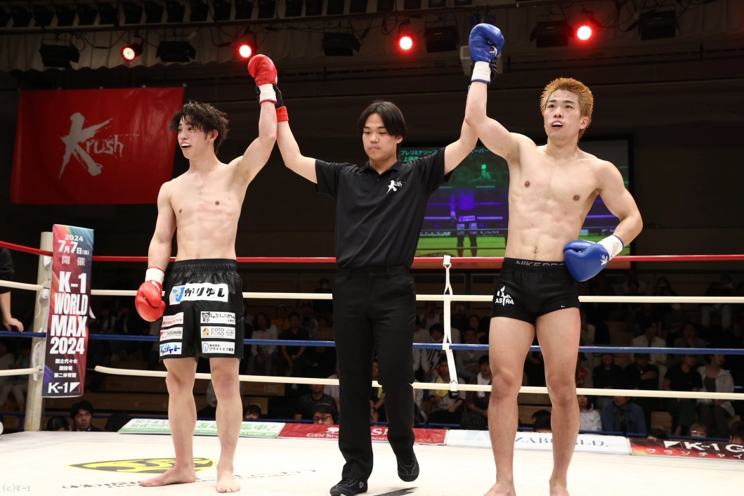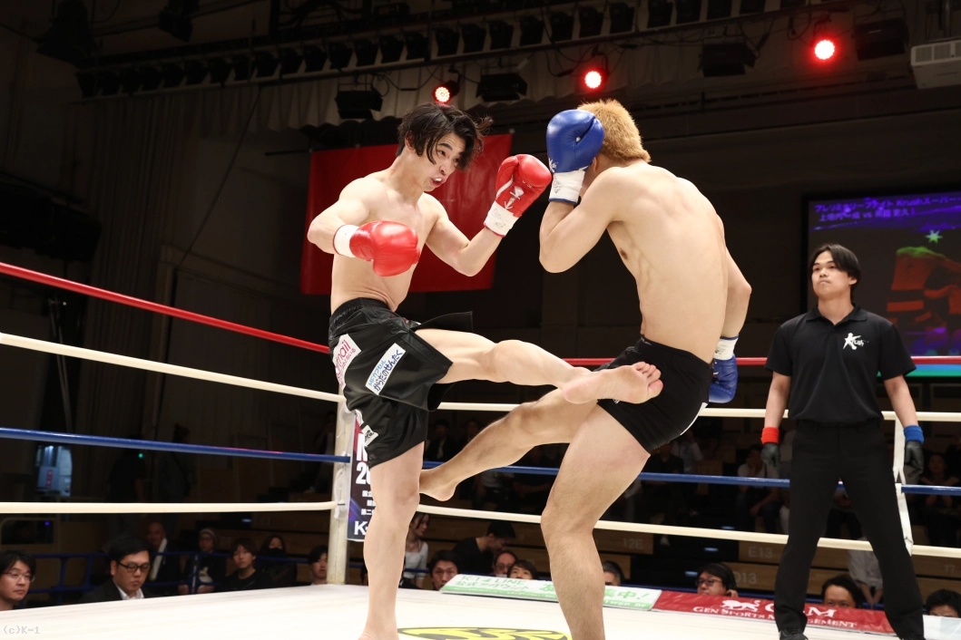 3R、上垣内はまずはパンチの連打で攻め込み、右のローキック。左のストレートのようなジャブを放ってから、ローキックのコンビネーションだ。茶圓もローキックでやり返し、パンチを振るっていくが、上垣内は決定打を許さない。そして、上垣内は見後のローキックを連打。ラウンド終盤にはニュートラルコーナー付近でパンチの打ち合いを展開した両者だが、ここでラウンド終了。判定は30-30、30-29(上垣内)、29-30(茶圓)で1-1のドローに終わった。