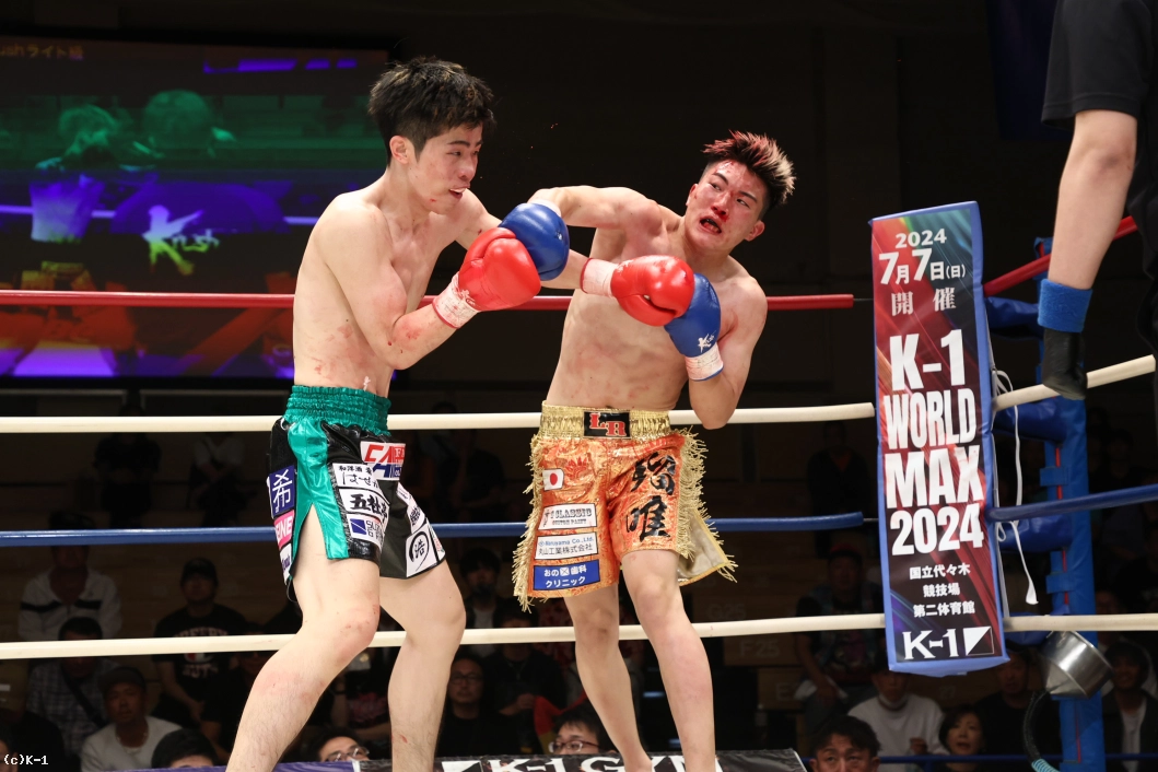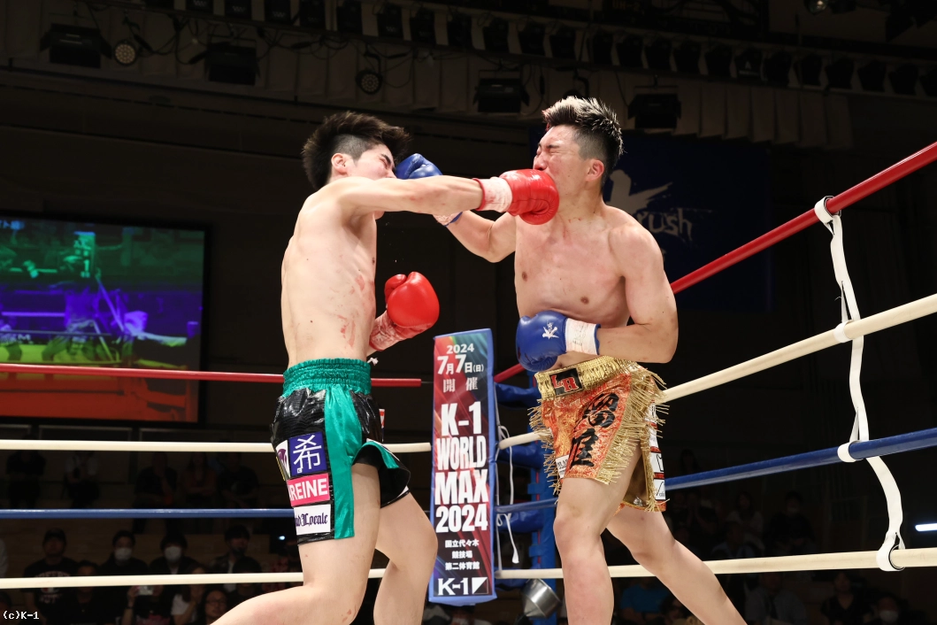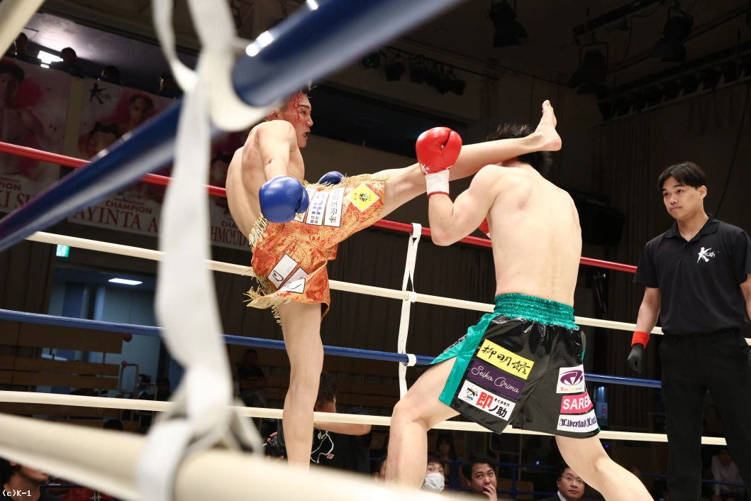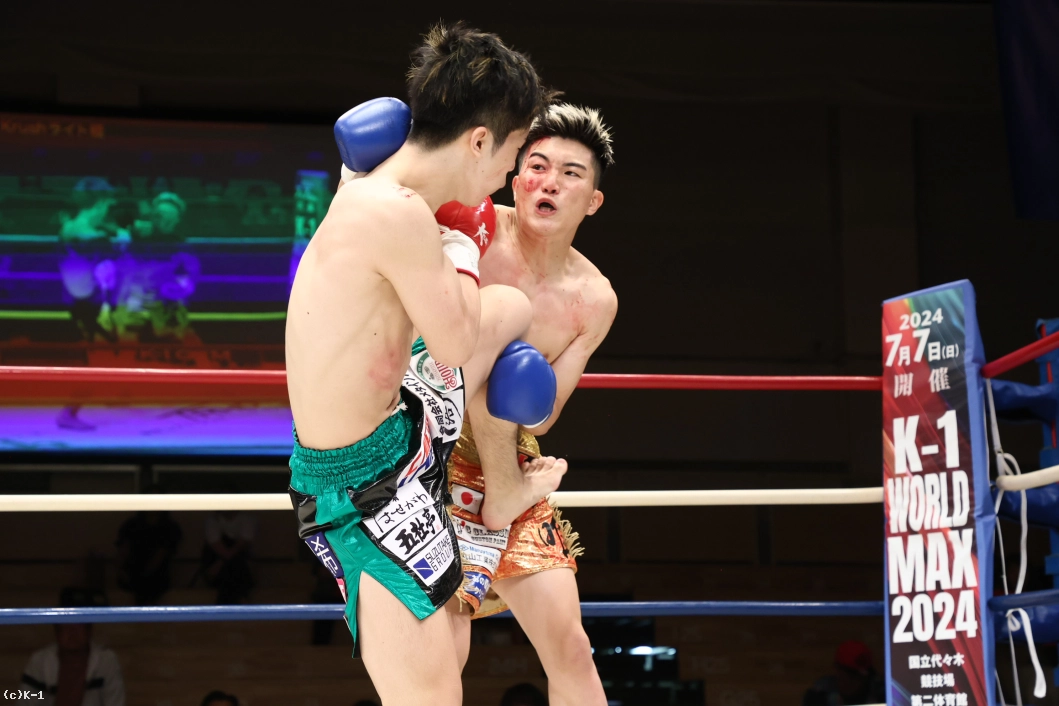 3R、下村がジリジリと圧力をかけてワンツー。瑠唯はダッキングでパンチをかわしながら右フック、右ミドルを返す。体ごと飛び込む瑠唯のフックに下村は冷静にワンツー。パンチを放ちながら前に出る下村に瑠唯は引き込みながら右ヒザを突き上げる。手数はやや下村が上回るも、瑠唯も大きな右のフックを振り回し応戦し続けた。