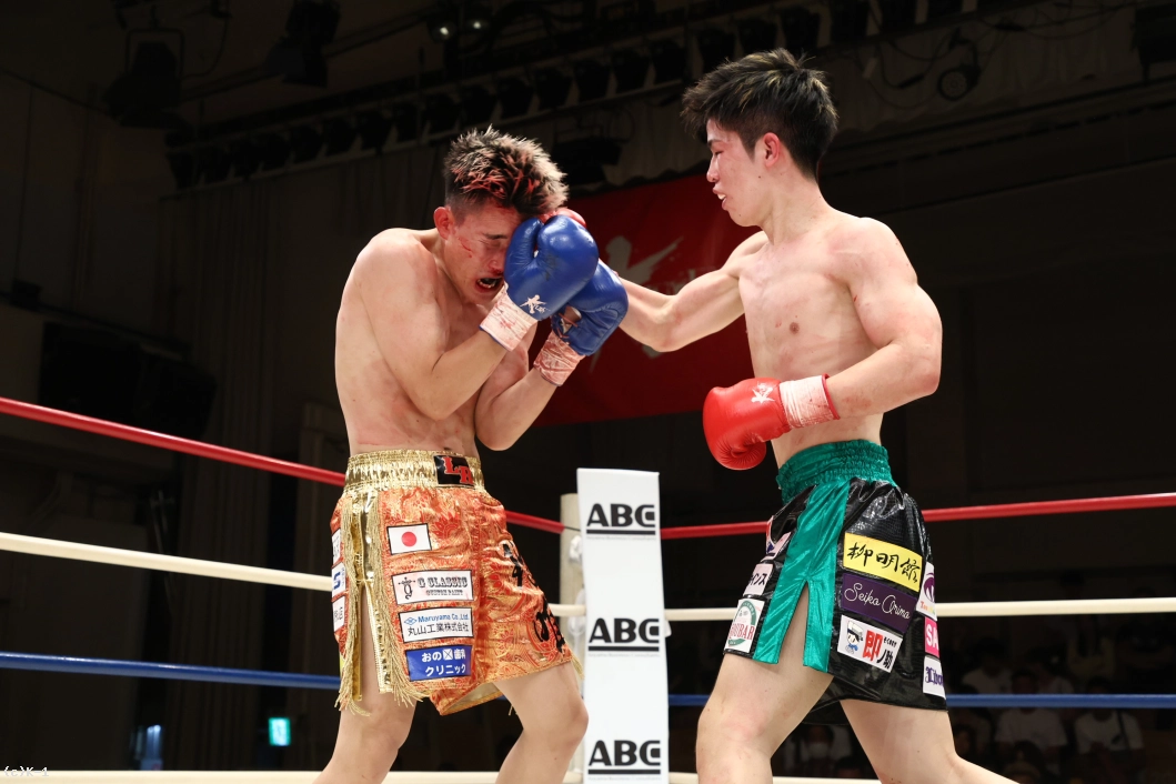 2R、サウスポーのスイッチした瑠唯が変則的な右フックを浅くヒット。もみ合いからの離れ際に瑠唯が左ハイでプレッシャーをかける。下村は左ジャブで前進し、ロープを背負う瑠唯にワンツーをヒット。下がる瑠唯に左右フックを連打で浴びせるが、瑠唯もパンチで反撃し攻め込ませない。