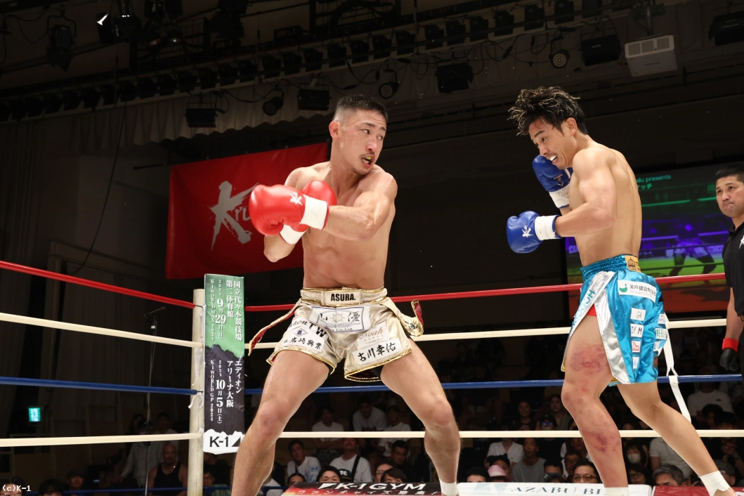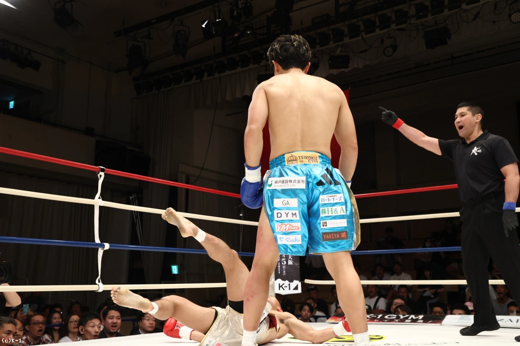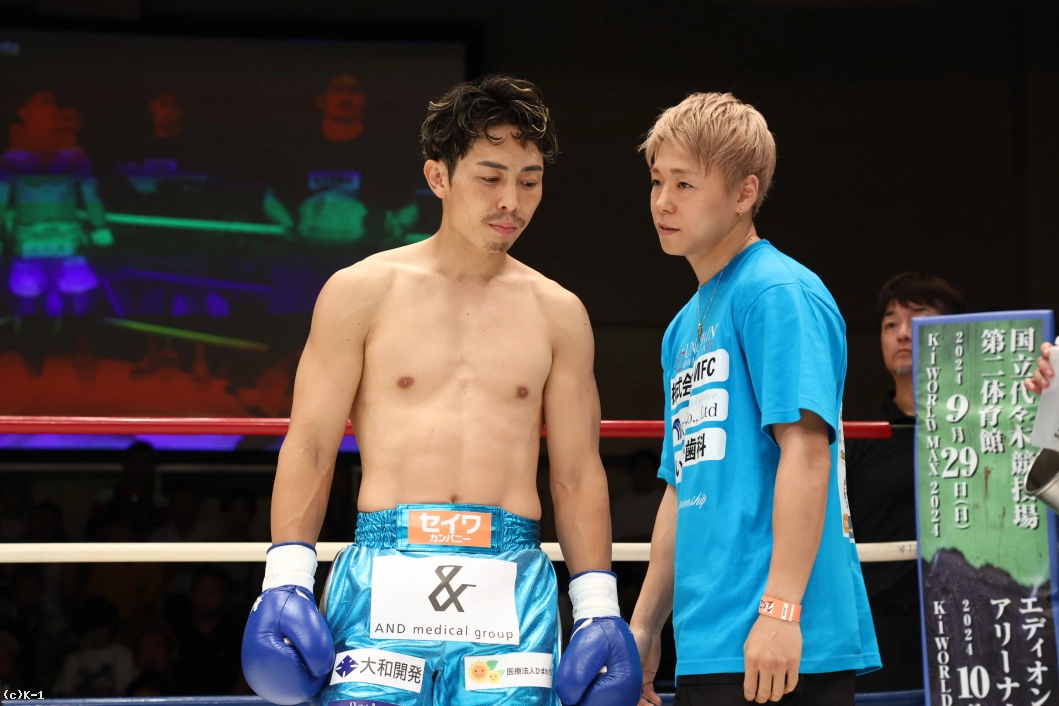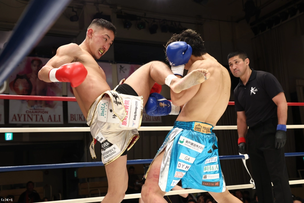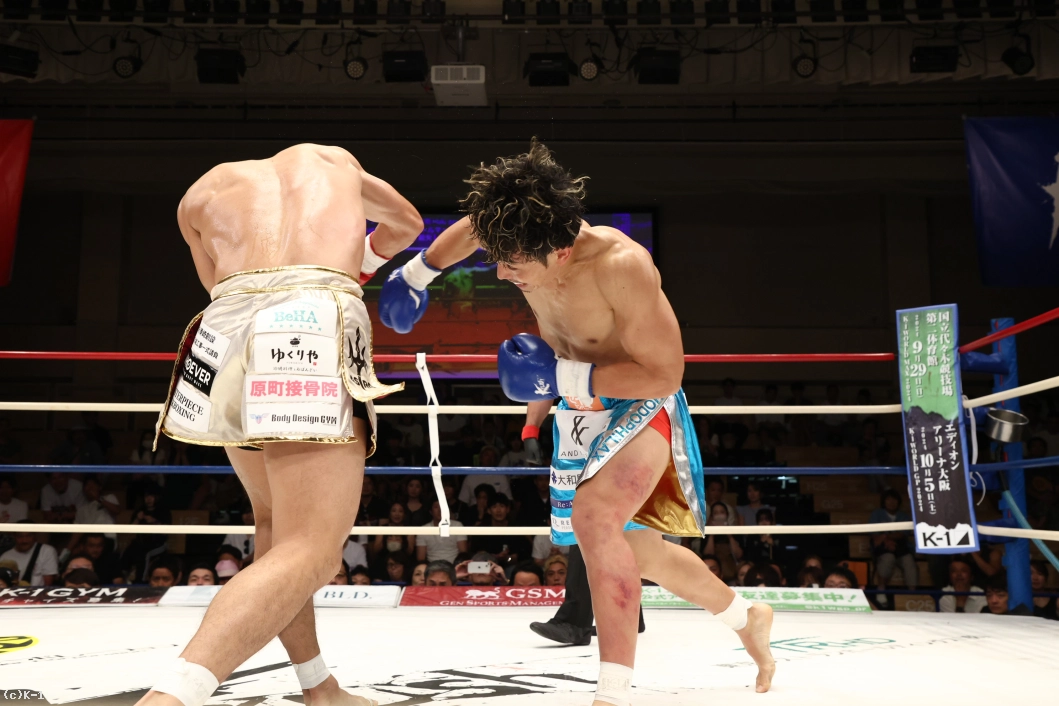 3R、前に出る大岩へ伊藤はワンツー。伊藤の打ち終わりに大岩が右フックを当てると会場から歓声があがる。伊藤が大岩に入り際に合わせた左アッパー、右ヒザを見せるも空転。大岩は落ち着きを見せながら左ミドル、右フックで伊藤を攻める。伊藤が打ち抜いた右ストレートに合わせた大岩の右フックがカウンターとなり、伊藤が再びダウン。立ち上がった伊藤を大岩が仕留めにかかるが、伊藤がパンチと飛びヒザ蹴りで応戦。大岩が右フックで伊藤をおおきくぐらつかせるも、伊藤は反撃の手を止めず。両者打ち合いのまま試合終了のゴングを向かえた。