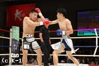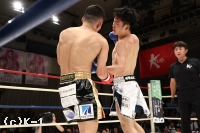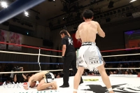 3R、高いガードのまま圧力をかける安尾。悠斗を右ローで転倒させるもローダウン。立ち上がる悠斗はやや足にダメージが見えるか。距離を詰めて左右フック連打を浴びせる安尾。下がる悠斗をワンツーで追い、ガードのすき間に右フックを叩き込む。手数が出なくなった悠斗へ安尾が叩き込んだ左ボディで悠斗がダウン。うずくまり立てない悠斗を見たレフェリーが試合をストップ。安尾が元王者をKOで下し2連勝を飾った。