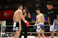 1R、両者フットワークを使いリングを大きく回る。細かいフットワークからワンツーで飛び込む悠斗に蹴り技で応戦する安尾。悠斗が左ボディを突き刺せば、安尾は左ミドルで突き放す。悠斗がリングの中央に位置する安尾を軸にリングを回る。安尾は悠斗の進行方向へ右ミドルを放ち、悠斗の打ち終わりにパンチを返していく。