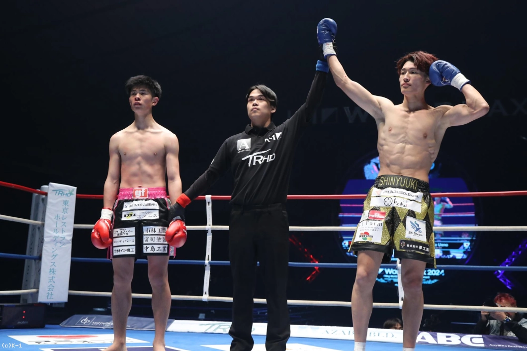 3R、龍之介はジャブをついて前へ。上野は回りながら左ミドルキック。胴回し回転蹴りの上野。これをガードした龍之介。上野は右ローキック、さらにパンチからハイキックのコンビネーションを見せる。上野は左前蹴りを顔面へ。左右フックの龍之介。互いに打ち合ったところで試合終了。判定勝負となり、三者とも30-28で上野が勝者となった。