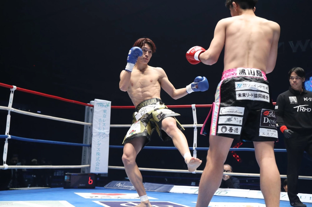 1R、上野は前蹴り、ローキックでコツコツ集めていく。龍之介は様子を見ながらガードを固める。すると右ストレートを放っていく龍之介。これに反応する上野。上野はローキック、ハイキック、ミドルキックと上中下に蹴り分ける。上野は三日月蹴り、そして右をヒットさせた。