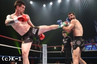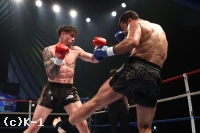 1R、アカピャンはローキック。ムシンスキは前へ出て、カーフキックをヒットしていく。アカピャンは左ハイキック。ムシンスキはプレスをかけてパンチをまとめる。アカピャンはカウンター待ち、ムシンスキはパンチから蹴りのコンビネーション。ムシンスキは詰めて、空いたところへ攻撃を当てていく。アカピャンはロープを背に守りに徹した。