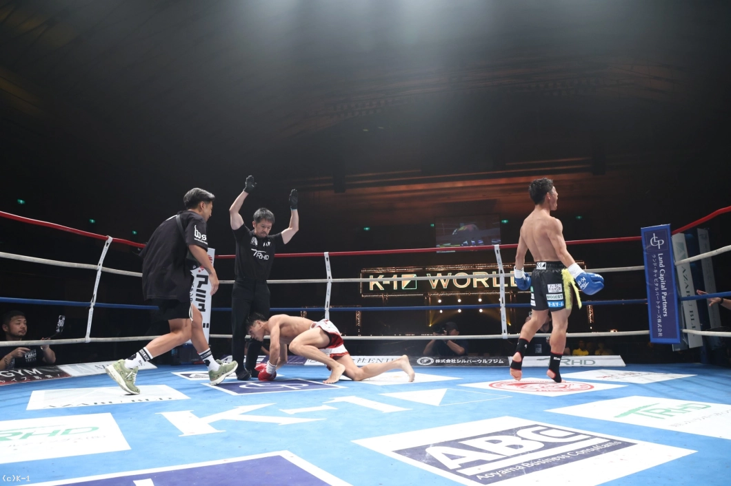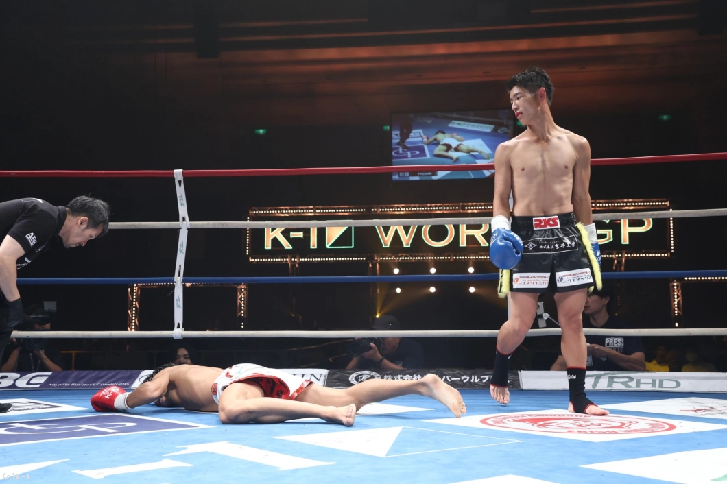 1R、ともにサウスポー構え。斗麗は左のカーフキック。兼田はインロー、斗麗も蹴りからパンチを返す。斗麗がヒザ蹴りに出たところに兼田が左フックでダウンを奪う。前のめりで倒れる斗麗。そのまま兼田のKO勝ちとなった。