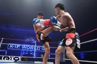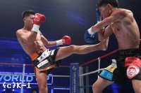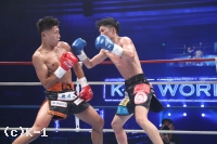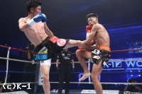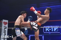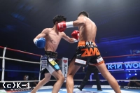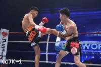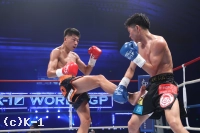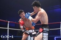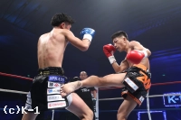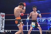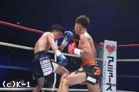 1R、大夢は右ローキック。サウスポー構えの東はワンツー、左のハイキック、さらにワンツーでテンポよく攻撃する。大夢はジャブからローキック。東は左のパンチも空振り。大夢はプレスをかけながらローキック、右のパンチで仕掛ける。そして大夢は左ローキックでダウンを奪った。