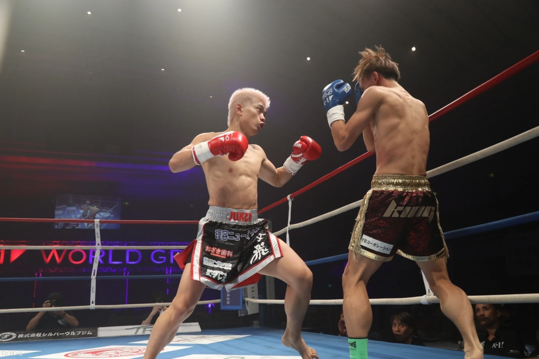 3R、堀井は前へ出て右のパンチ、ローキックで連続攻撃。岩KINGは左のカウンターを狙うも、これは不発に。堀井は右で入りながら、左のパンチ、右のローキックのコンビネーション。岩KINGは右を返すも、堀井はパンチ連打で一歩も引かない。攻め続ける堀井。クリンチからのヒザ蹴りで注意を受ける岩KING。判定勝負となり、堀井が3-0のユナニマス勝利をものにした。