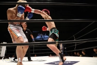 1R、ジリジリと圧力をかける斎藤が重い右ロー。対する岡嶋は斎藤の蹴りにあわせて右フックを強打する。斎藤の入り際に岡嶋も右ロー。お構いなしに前進を続ける斎藤だが、岡嶋の右カーフでバランスを崩すシーンも。