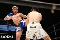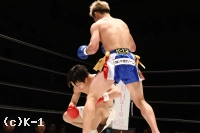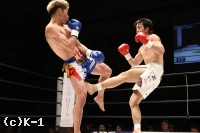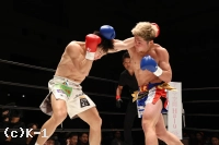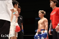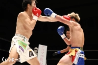 1R、蹴りで攻める天野にパンチで前に出る西元。天野の入り際に西元が左フックをあわせると、天野も右ミドルを西元のボディにめり込ませる。西元が右カーフを天野の足に刻むと、天野は左ジャブで応戦。続いて放った右フックが西元のアゴを捉えると、西元はグニャリと崩れ落ちるようにダウン。すぐさまコーナーからタオルが投入され、天野が劇的なKO勝利を飾った。