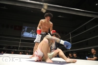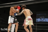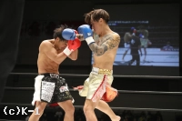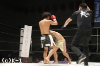 2Rは小川の右カーフが効いてきたか、山田がバランスを崩すシーンも。手数が減る山田を追い小川がコツコツとカーフを積み重ねる。3R、流れを引き寄せた小川が右カーフで山田からダウンを奪い返す。山田は足を流れながらも強いワンツーで応戦。小川はガードを固めたまま前進し、右カーフで2度目のダウンを奪取する。山田は立ち上がろうとするもバランスを取れずにレフェリーがストップ。小川が逆転KO勝利で初勝利を飾った。