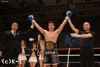 3R、中島は距離を取ってローを乱れ打ち。山崎も右ストレートとボディブローで前に出ていくが、中島もパンチ&ローで前に出て、飛びヒザ蹴りで山崎に尻餅をつかせる。すぐに立ち上がった山崎も左アッパーを突き上げて突進。中島がロー、山崎がパンチで激しく打ち合い、試合終了のゴングが鳴らされる。判定はジャッジ3名とも1ポイント差で中島が勝利。中島が山崎へのリベンジを果たすと共に悲願のKrush王者に輝いた。