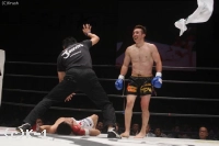 2Rも左ボディを起点に前に出る木村。左フックから右ストレート、バックスピンキックを突き刺す。富平も果敢にパンチで前に出ていくが、足を止めての打ち合いでは木村の回転力が勝り、ここでも木村がダウンを奪う。何とか立ち上がった富平だったが、最後は木村が右ストレートを打ち抜き、富平がマットに大の字。木村が名古屋でも戦慄のKO勝利を収めた。