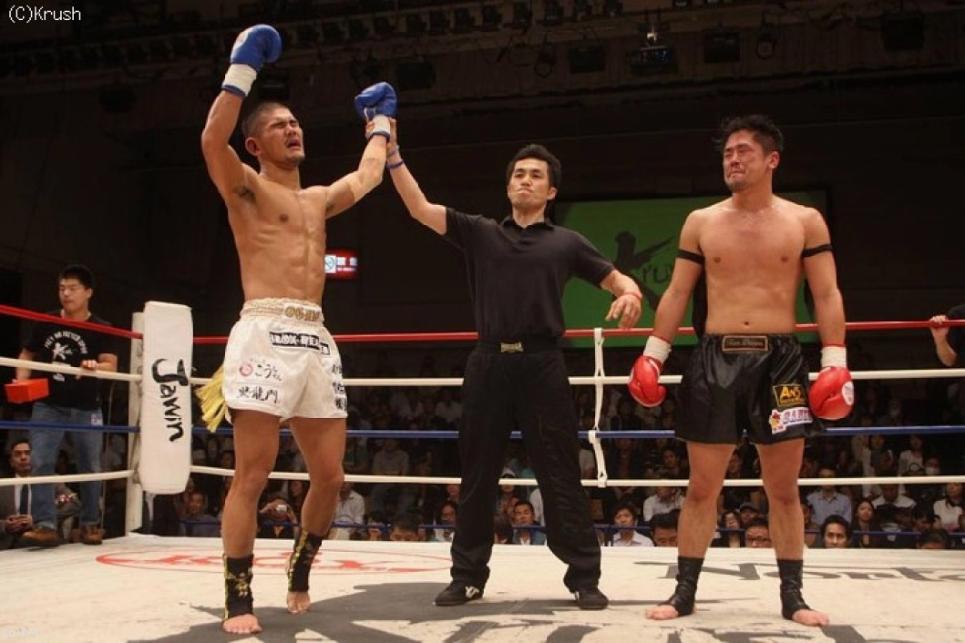 3R、尾崎がフック、アッパー、バックブローで突進。一輝も右ストレートを当てて猛連打、尾崎も逆転のバックブローを狙うが当たらない。お互いに中間距離で打ち合う中、一輝が右のヒザ蹴りを当ててダウンを奪う。再開後、一輝がパンチとヒザ蹴りで猛攻。尾崎の反撃をしのぎ切り、一輝が執念の判定勝利をもぎとった。