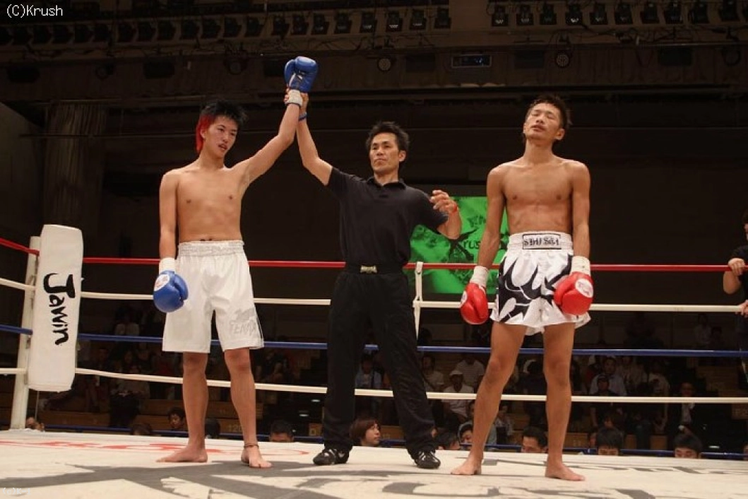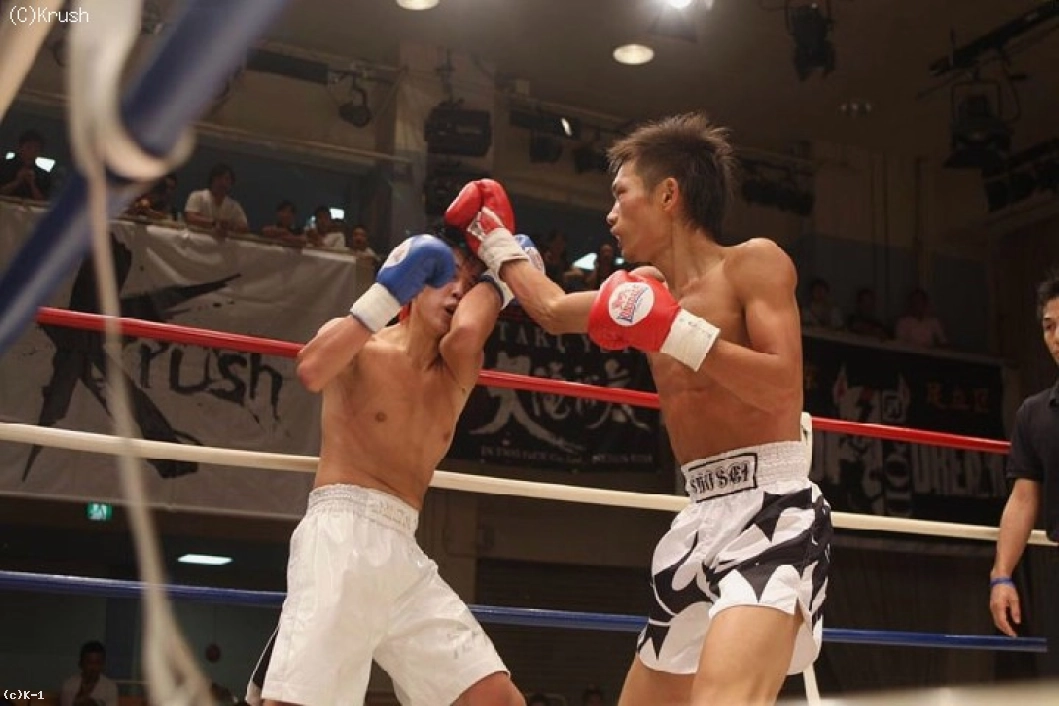 3R、距離を潰してパンチで突進する濱田が右フックで佐野をぐらつかせる。さらにコーナーでガードを固める佐野に連打を打ち込み続けるが、佐野も必死にヒザ蹴りで反撃。佐野がヒザ蹴りの連打でダウンを奪い、勝利をもぎとった。