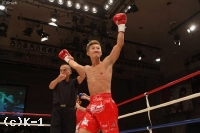 1R、山崎が鋭い踏み込みジャブを突き刺すと、右ストレートからワンツー。ターナーをロープに詰めると右フックを叩き込んでダウンを奪う。再開後、山崎はバックキックから距離を詰めて猛連打。最後はターナーの蹴りに右フックを合わせて、ターナーをマットに沈めた。