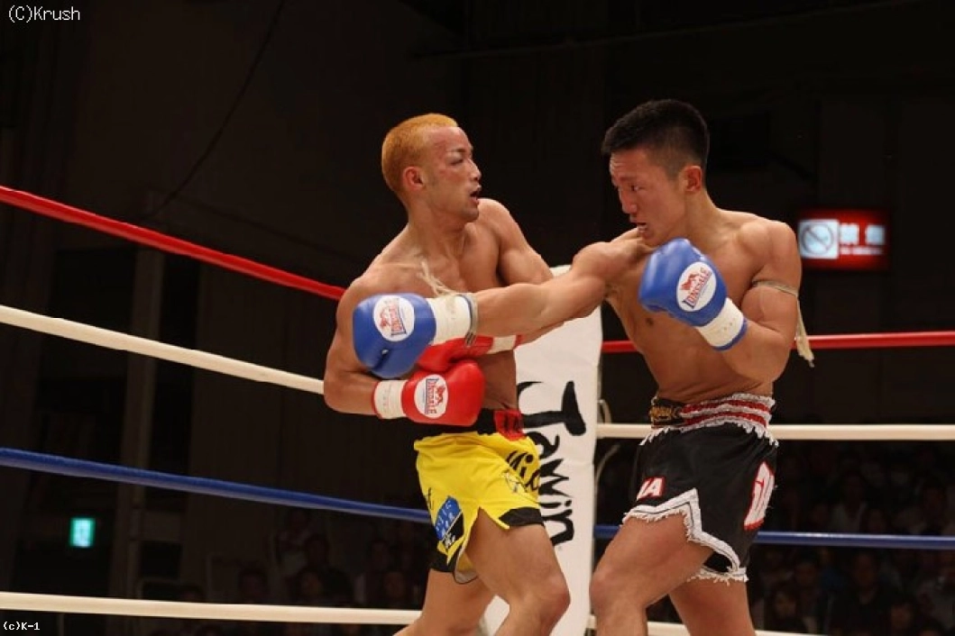 1R、いきなり激しく打ち合う両者。結城はサウスポーの大川に右ハイキックから右フックを打ち込む。大川は距離を取りつつ、左ストレートから右アッパー。結城はプレッシャーをかけ続け、右ストレートでダウン奪う。再開後、結城が右ハイキックから連打、右ストレートで大川を吹っ飛ばす。ここでラウンド終了となり、大川にとってはゴングに救われる形となった。